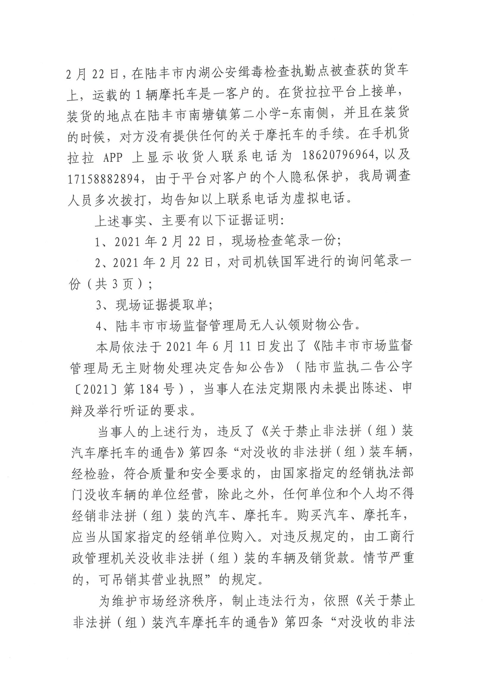 陆丰市市场监督管理局无人认领财物处理决定公告