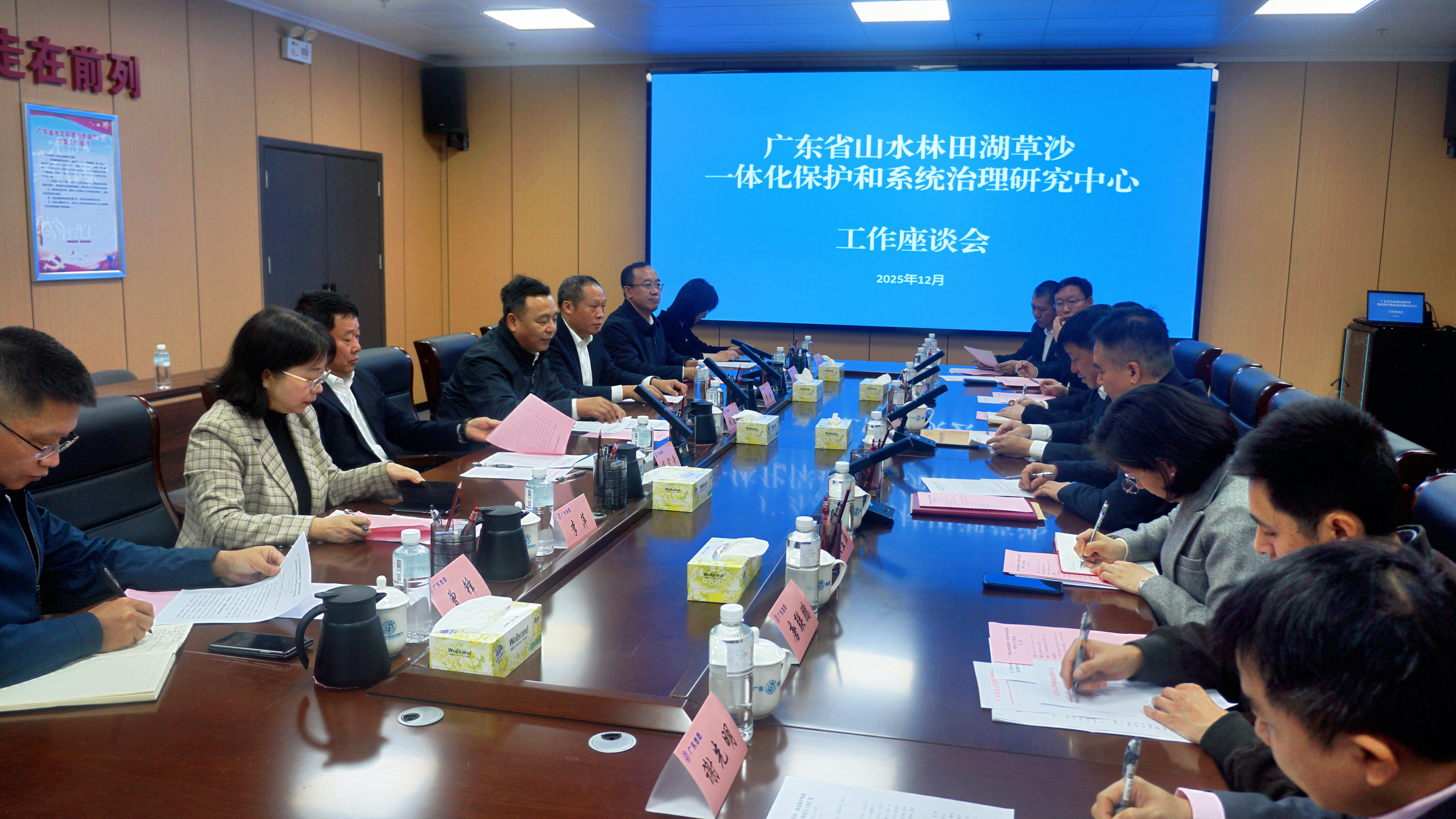 揭牌仪式后召开了工作座谈会,研究部署广东省山水林田湖草沙一体化保护和系统治理研究中心的工作思路和重点任务,凝聚共识、形成合力,为下一步工作开好局、起好步。水环中心党委书记尤永春汇报了研究中心工作,明确了总体思路、目标定位、工作机制和重点任务,并表示将以高度的紧迫感、使命感、责任感,以高站位、高效率、高质量的工作精神,落实开展研究中心的各项工作任务。