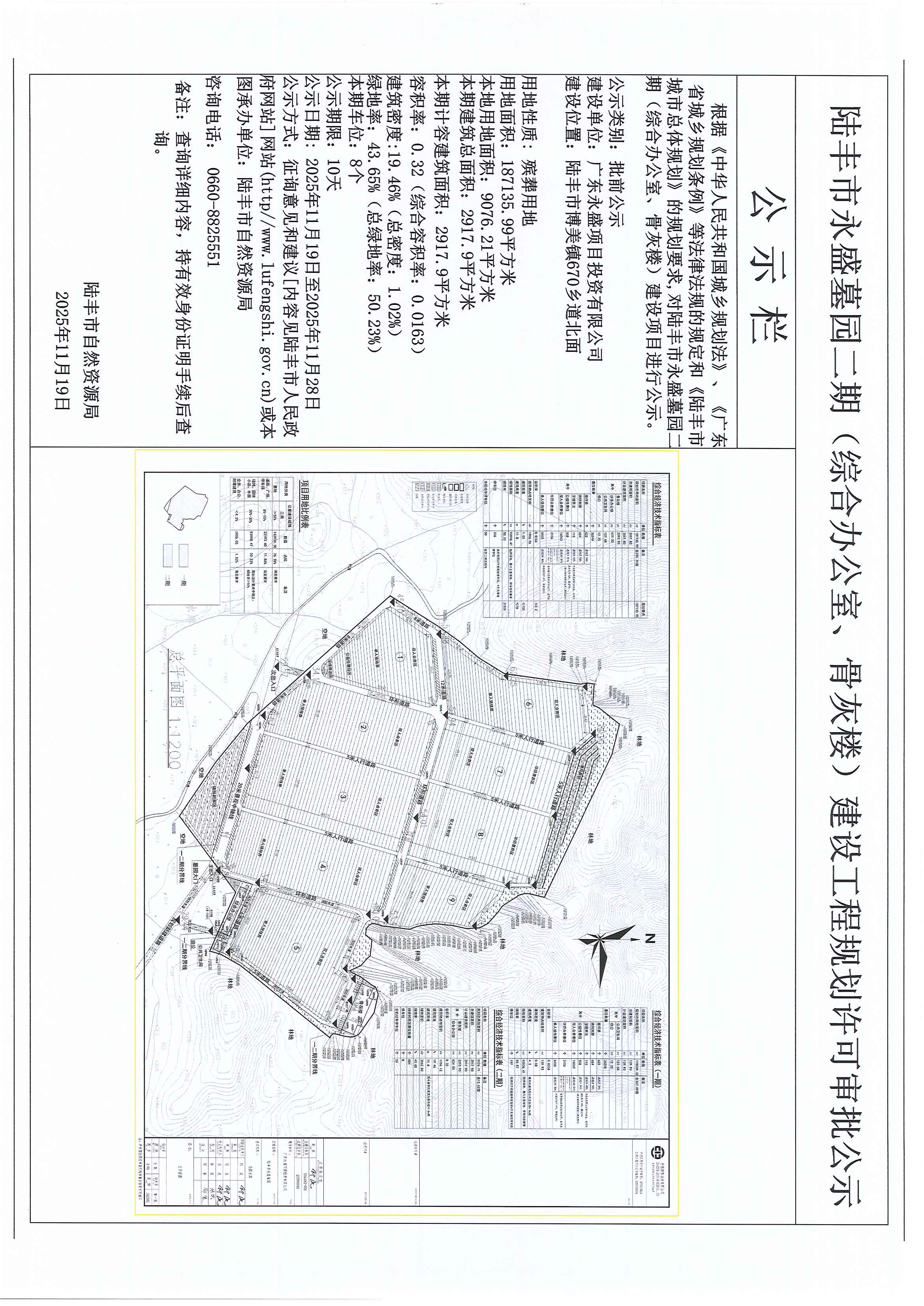 陆丰市永盛墓园二期(综合办公室、骨灰楼)建设工程规划许可审批公示