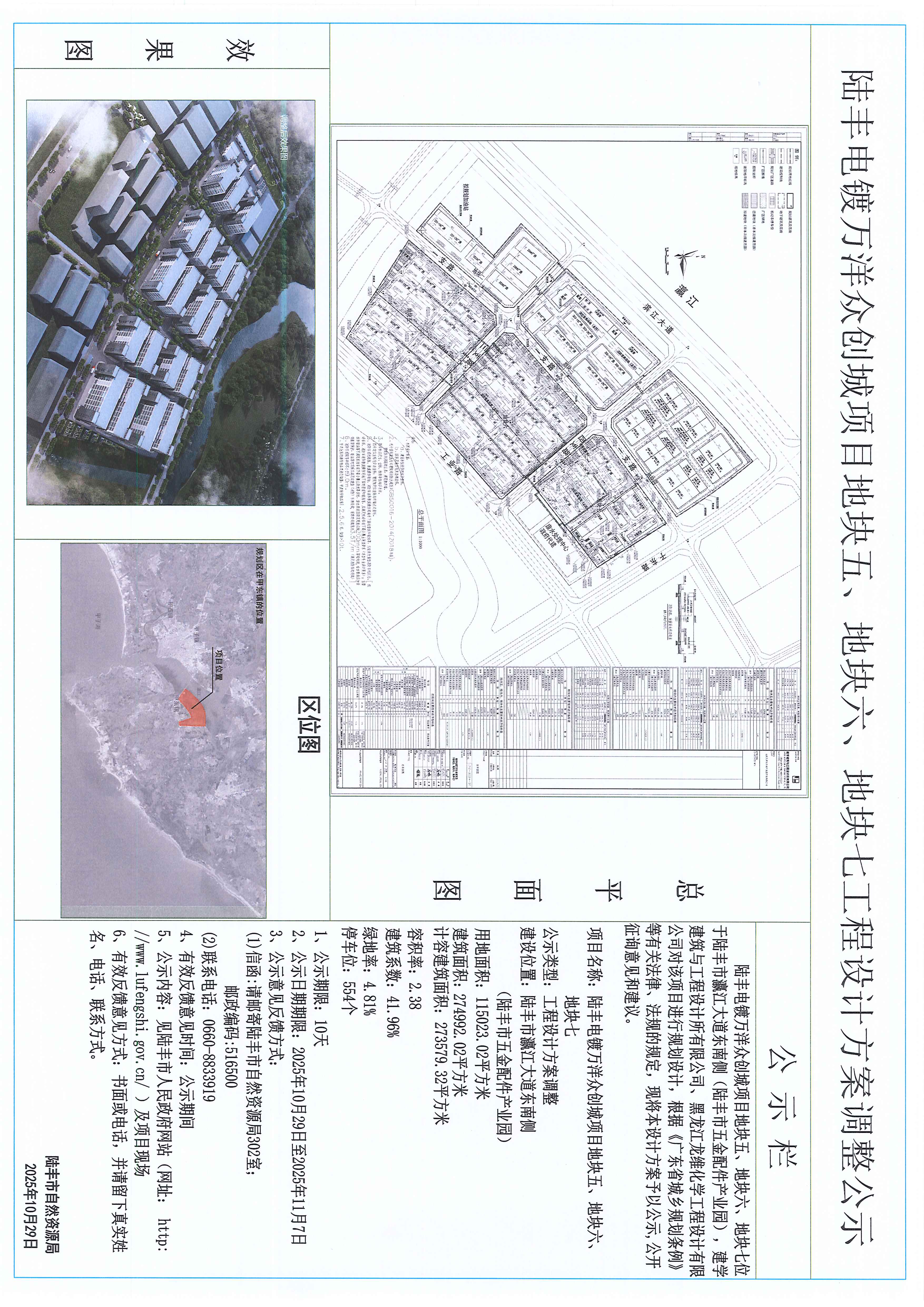 陆丰电镀万洋众创城项目地块五、地块六、地块七工程设计方案调整公示