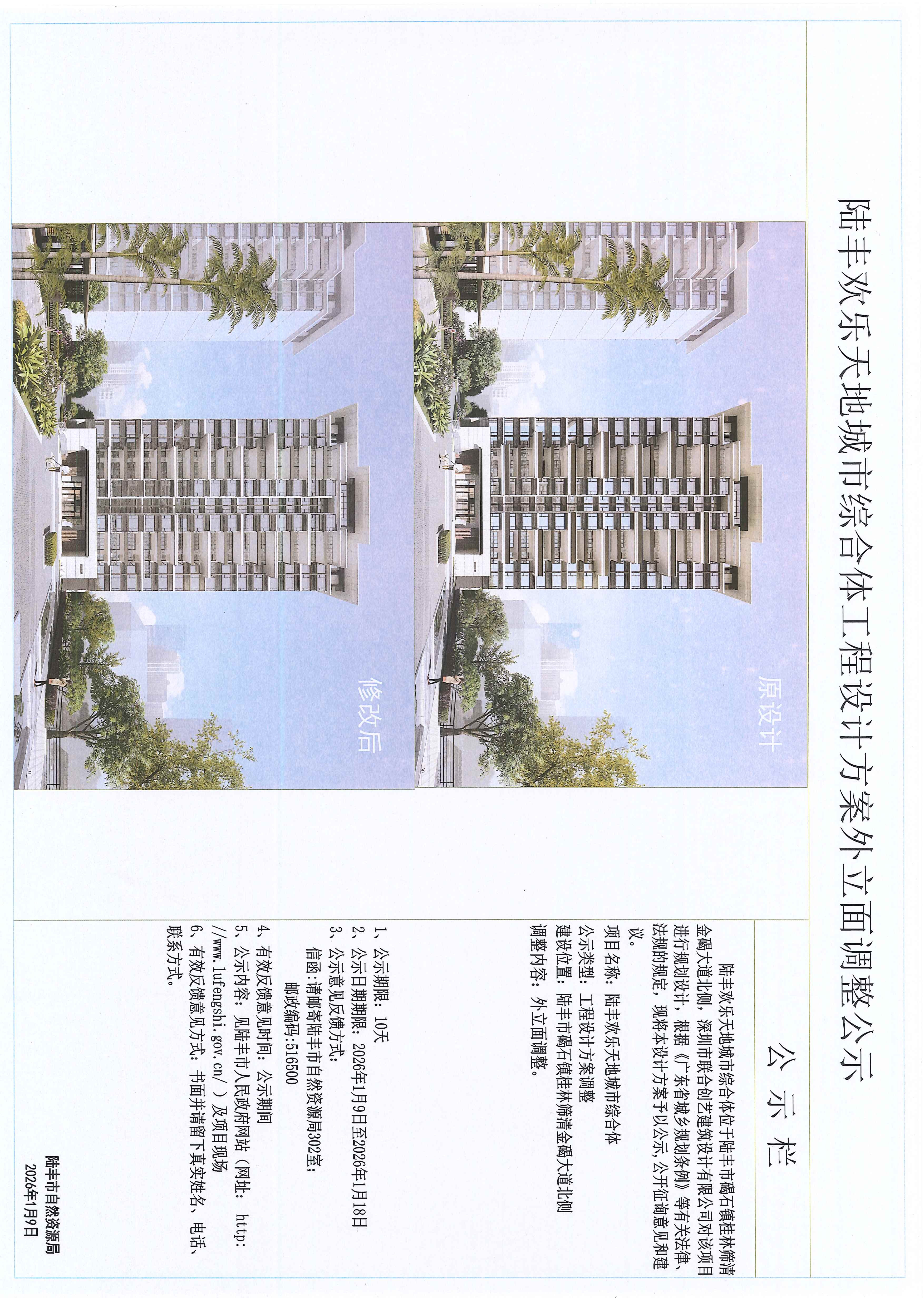 陆丰欢乐天地城市综合体工程设计方案外立面调整公示