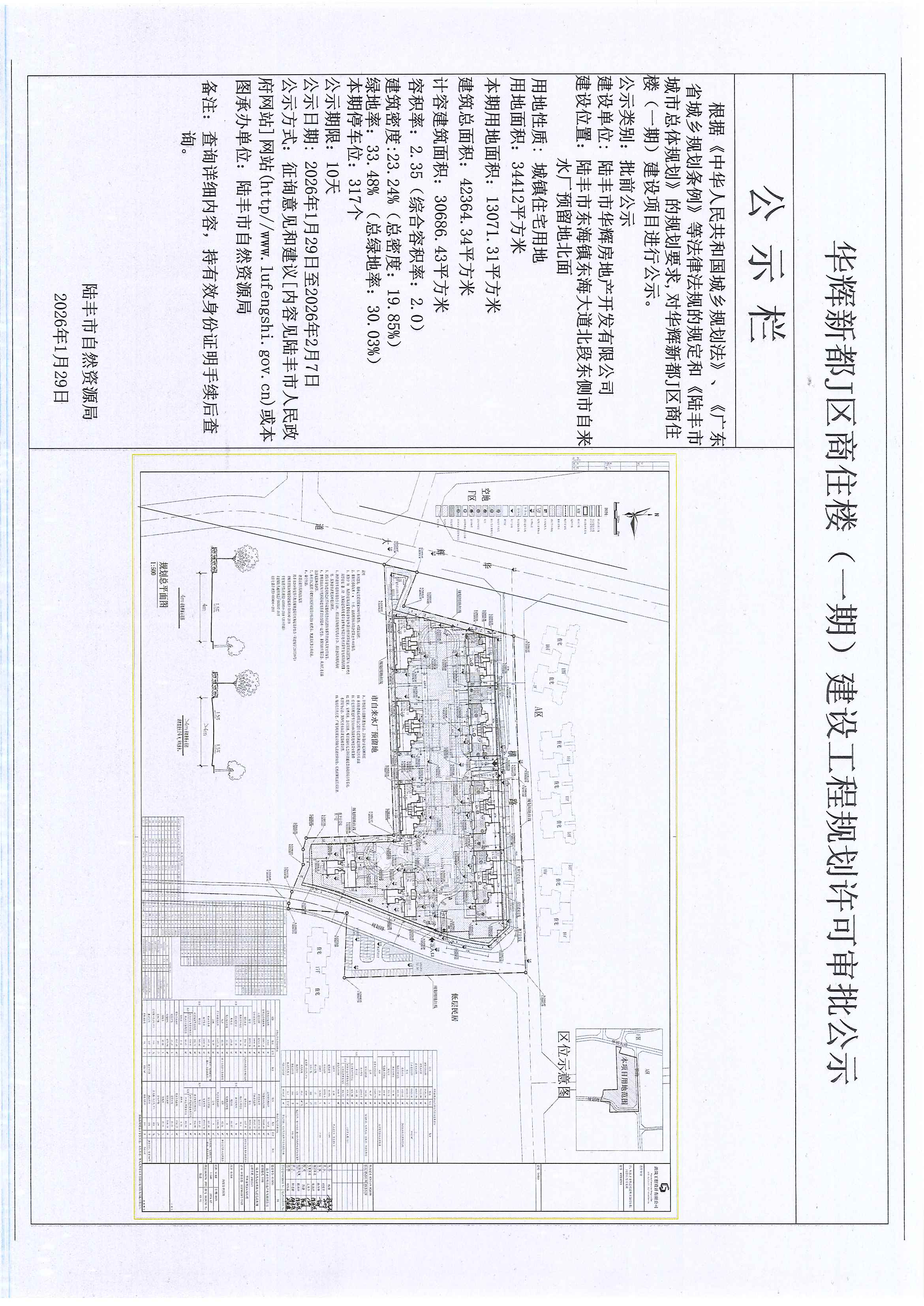 华辉新都J区商住楼(一期)建设工程规划许可审批公示