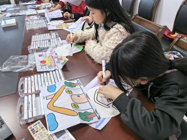 活动当天,现场气氛温馨而活跃。孩子们在镇、村两级妇联志愿者的引导下,充分发挥天马行空的想象力与创造力,认真专注地投入到绘画创作中。他们用稚嫩的笔触、鲜艳的色彩,在扇子上尽情挥洒,勾勒出绿树环绕、鲜花盛开的庭院,描绘出整洁有序、充满趣味的家园场景。一幅幅充满童真、童趣和美好愿景的画作,不仅展现了孩子们对美好生活环境的热爱与向往,也生动体现了“美丽庭院”创建活动在孩子们心中播撒下的绿色、文明种子。