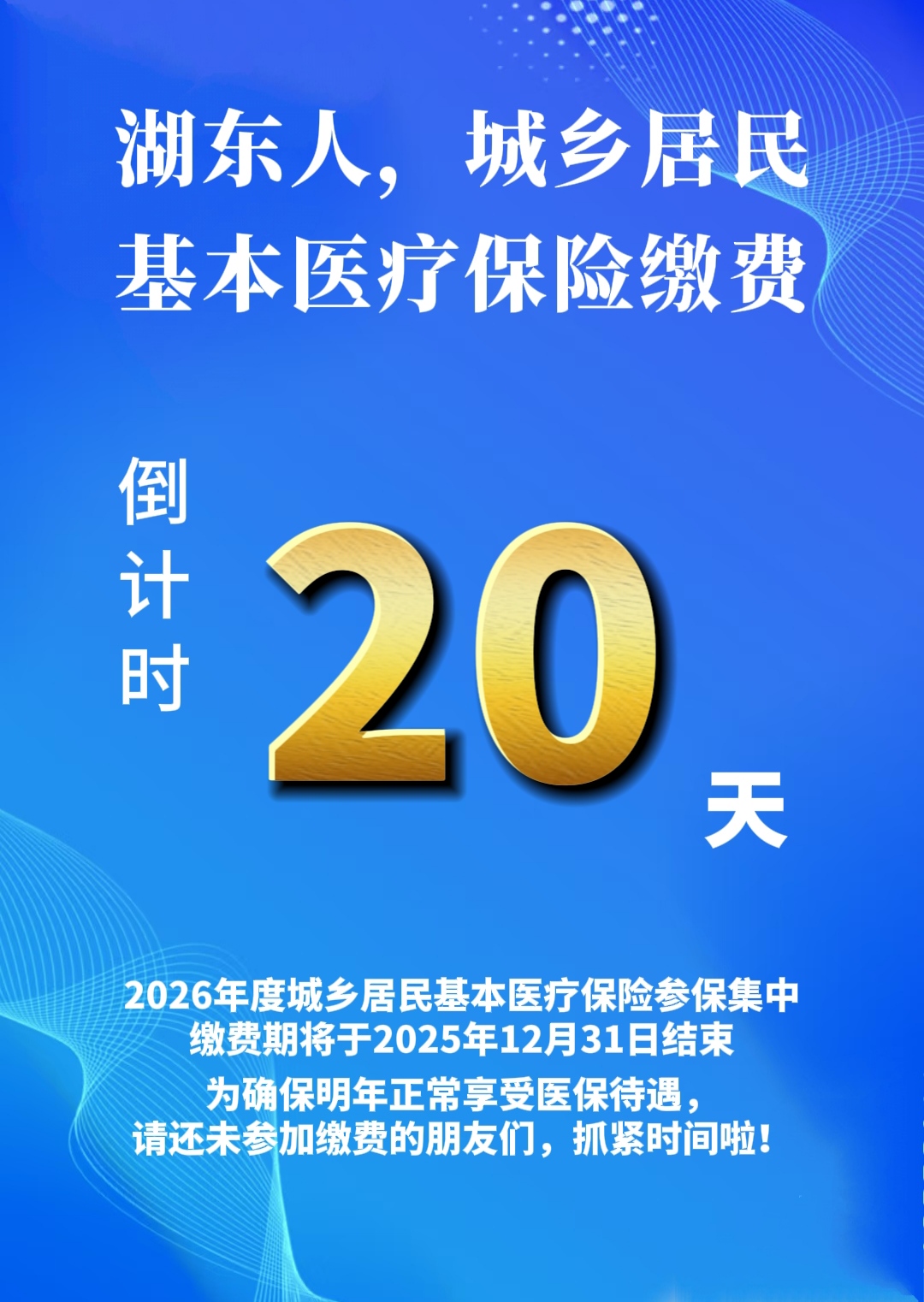 湖东人,城乡居民基本医疗保险缴费倒计时20天