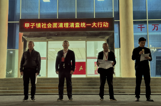 为深入贯彻落实汕尾市委逯峰书记“坚定信心、上下联动、攻坚克难、平稳发展”主基调,填好经济、平安“两张报表”的指示要求,结合当前甲子镇禁毒形势,为进一步巩固禁毒成果,全面推进创建全国禁毒示范创建工作,确保我镇岁末年初社会大局平安、稳定。经镇党委、政府研究决定于2025年1月2日晚组织镇府全体干部职工、村(社区)两委干部、网格联防队员、各派出所警力,联合陆丰市特警大队、禁毒专职队、禁毒突击队共 428 人集中开展甲子镇社会面专项清理清查统一大行动。
