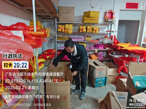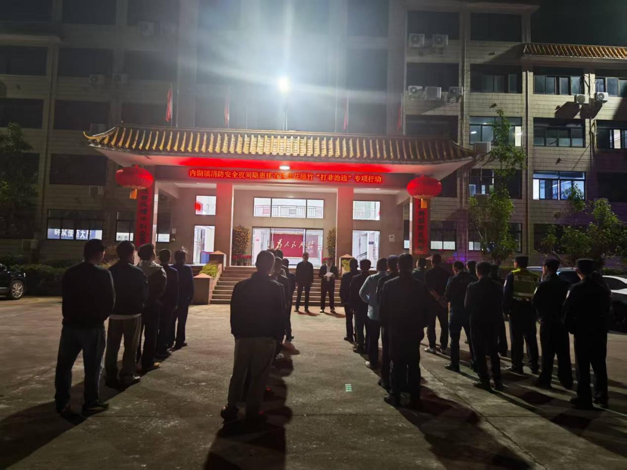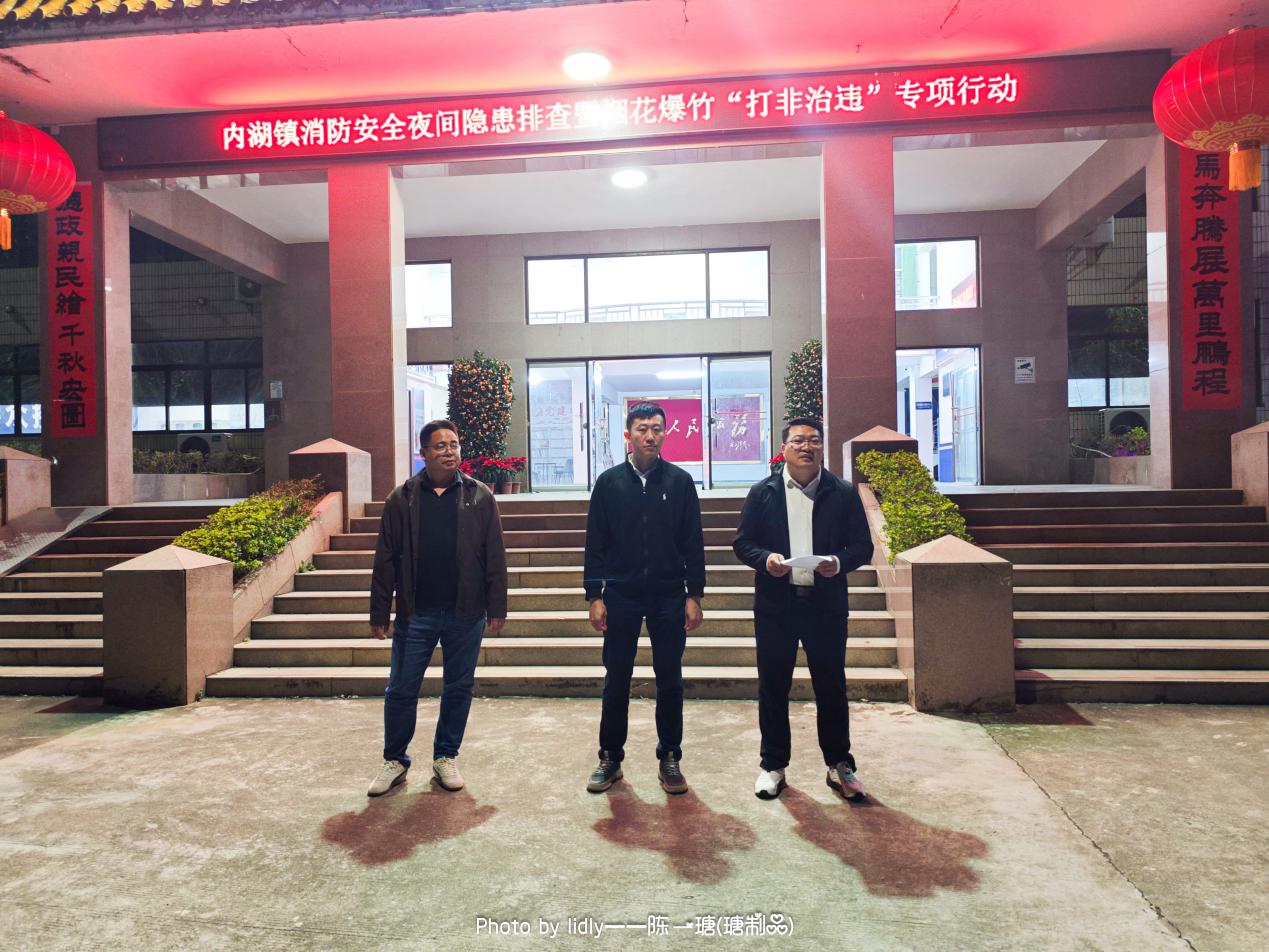 为深入贯彻落实习近平总书记关于安全生产的重要指示精神,切实守护辖区群众的生命财产安全,内湖镇严格落实市委、市政府的工作部署,于2026年2月21日20时,组织镇应急办、综合行政执法队、专职消防队、内湖村两委干部及网格联防队员,开展消防安全隐患排查暨烟花爆竹“打非治违”行动,扎实筑牢辖区安全稳定防线。