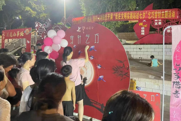七夕节,又名乞巧节、女儿节,是中华民族重要传统节日之一。为推动中华传统节日振兴,传承弘扬中华优秀传统文化,营造浓厚节日氛围,8月10日晚,南塘镇元兴社区、元新社区、新墟社区、南兴社区、新兴社区和东桥村在华山寺联合开展“我们的节日·七夕”主题文化活动。通过组织开展群众喜爱、富有特色的文明实践活动,丰富人民群众精神文化生活。