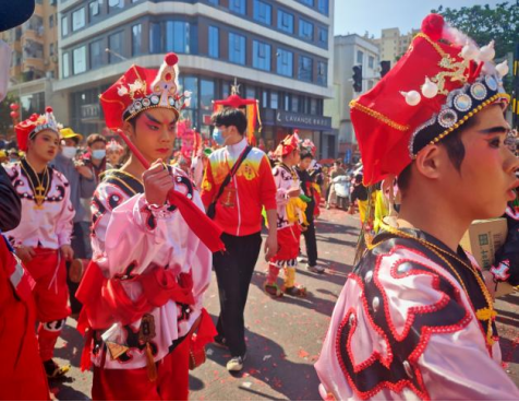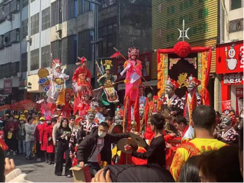 巡游所到之处人头攒动,观者如云。沿途信众摆列香案,虔诚敬拜。彩旗迎风飘扬,锣鼓齐鸣,鞭炮连续响不停。音乐声声入耳,花篮摇曳多姿。虎狮腾跃威风凛凛,双龙翻滚仿如神龙降世;英歌舞乐声激昂雄壮,舞姿豪放洒脱;飘色服饰艳丽,精巧逼真,表演者仪态优美;这些节目犹如一幅幅精美的画卷,展现出民族文化的瑰丽和独特,令人陶醉其中。