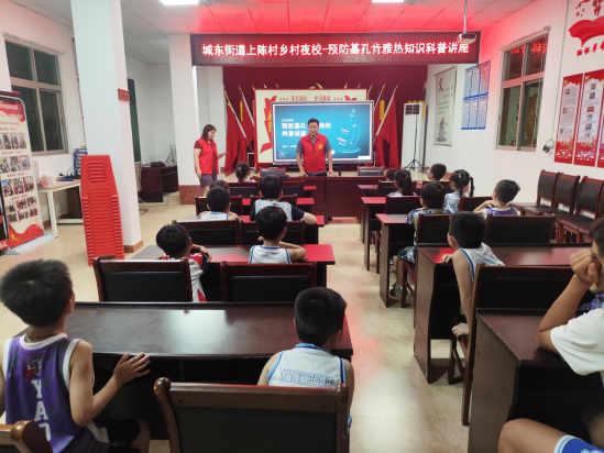 为切实增强辖区中小学生对基孔肯雅热的防范意识,帮助孩子们掌握科学的预防方法,8月12日,城东街道上陈村文明实践站乡村夜校精心组织了一场别开生面的预防基孔肯雅热知识科普讲座,为22名中小学生送上了一堂生动实用的健康“必修课”。