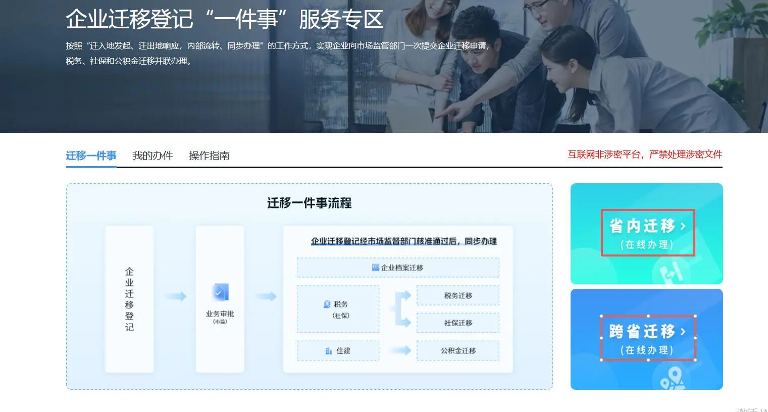 企业迁移也曾面临“往返跑、多头跑”的难题,如何让企业“安家落户”更高效便捷?为进一步深化“放管服”改革,持续优化营商环境,目前广东政务服务网企业迁移登记“一件事”服务专区,推进实现企业跨省迁移“一次申请、一次办结”。该功能整合企业迁移、住房公积金迁移、税务迁移和社保迁移等企业迁移事项,有效打通了企业跨省迁移的关键环节,切实解决了以往“多头申请、多次跑动”的难题,显著提升企业办事便利度。