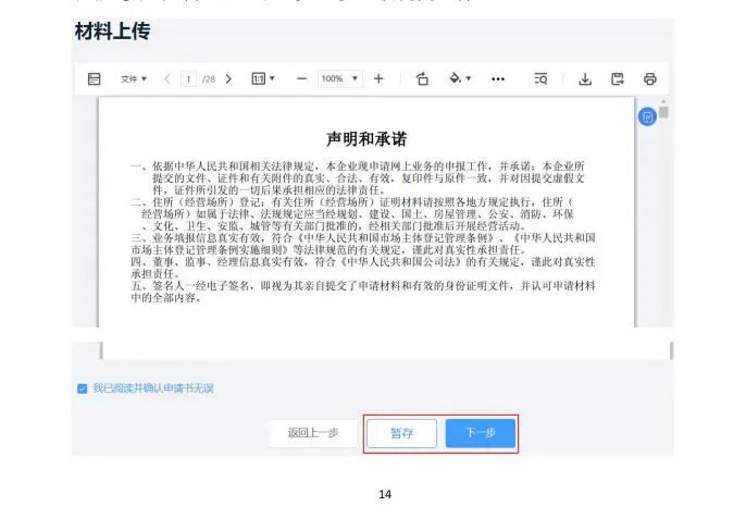 上传附件材料后点击下一步,进入到文书确认预览界面。确认信息后即可点击“下一步”按钮预提交业务即可。