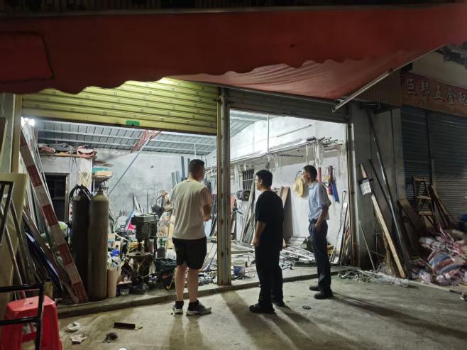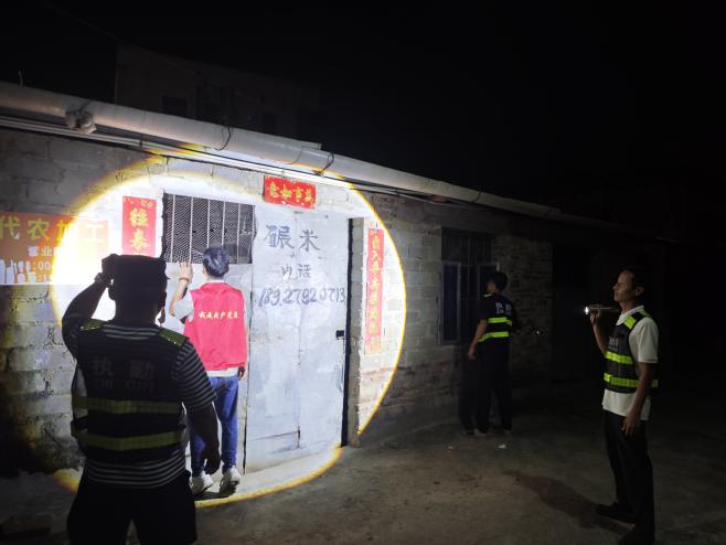 当晚的行动由镇主要领导任总指挥,统一调度镇领导班子成员,全体干部职工,派出所全体干警,后坎、高田等各村“两委”干部和网格联防队员,共计160余人,组成多个检查组,分片分区同步开展清查。行动聚焦各类经营场所、人员密集住宿区域、仓储物流单位及电动自行车违规停放等重点部位,实施“全覆盖、无死角”拉网式排查。