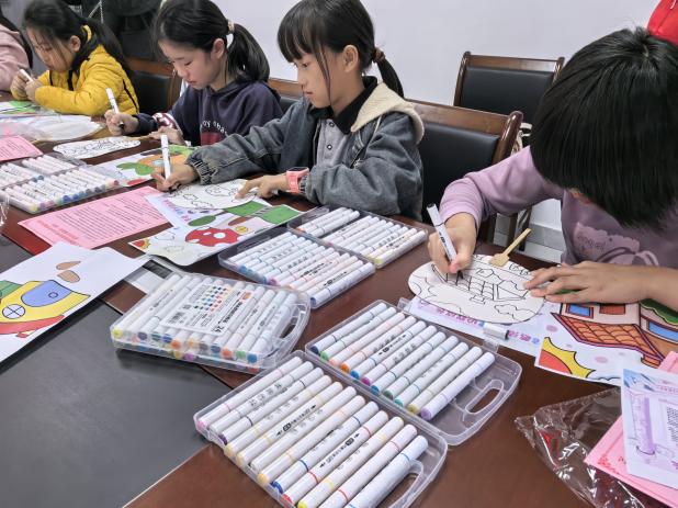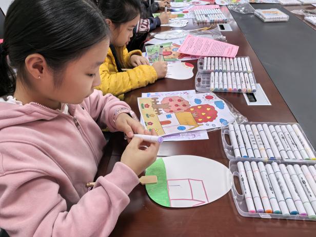 活动当天,现场气氛温馨而活跃。孩子们在镇、村两级妇联志愿者的引导下,充分发挥天马行空的想象力与创造力,认真专注地投入到绘画创作中。他们用稚嫩的笔触、鲜艳的色彩,在扇子上尽情挥洒,勾勒出绿树环绕、鲜花盛开的庭院,描绘出整洁有序、充满趣味的家园场景。一幅幅充满童真、童趣和美好愿景的画作,不仅展现了孩子们对美好生活环境的热爱与向往,也生动体现了“美丽庭院”创建活动在孩子们心中播撒下的绿色、文明种子。