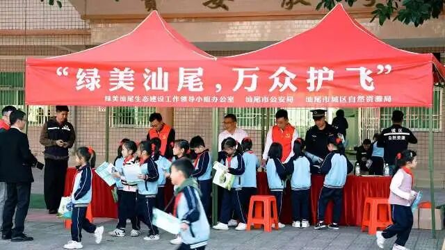 近日,由汕尾市绿美办、汕尾市林业局、汕尾市公安局共同主办的“绿美汕尾,万众护飞”2025年广东省第35届保护野生动物宣传活动,先后走进汕尾市城区东涌镇中心小学、海丰县附城镇第二小学、陆河县河田镇中心小学、陆丰市潭西镇东山小学。活动旨在进一步加强鸟类保护工作,提升公众特别是青少年爱鸟护鸟的生态意识。