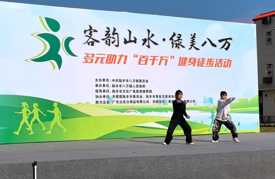 新年伊始,万象更新。2026年1月1日上午,陆丰市八万镇埔美广场彩旗飘扬、人声鼎沸,“客韵山水 绿美八万——多元助力‘百千万’健身徒步活动”正式启幕。来自汕尾市、陆丰市挂驻单位代表,八万镇机关企事业单位职工、镇村干部、人大代表、商会代表及徒步爱好者等约300人齐聚一堂,以脚步丈量绿美风光,用双眼见证振兴成果,在10公里的徒步旅程中感受八万镇实施“百千万工程”的崭新气象。陆丰市人民政府叶志帆副市长参加活动。