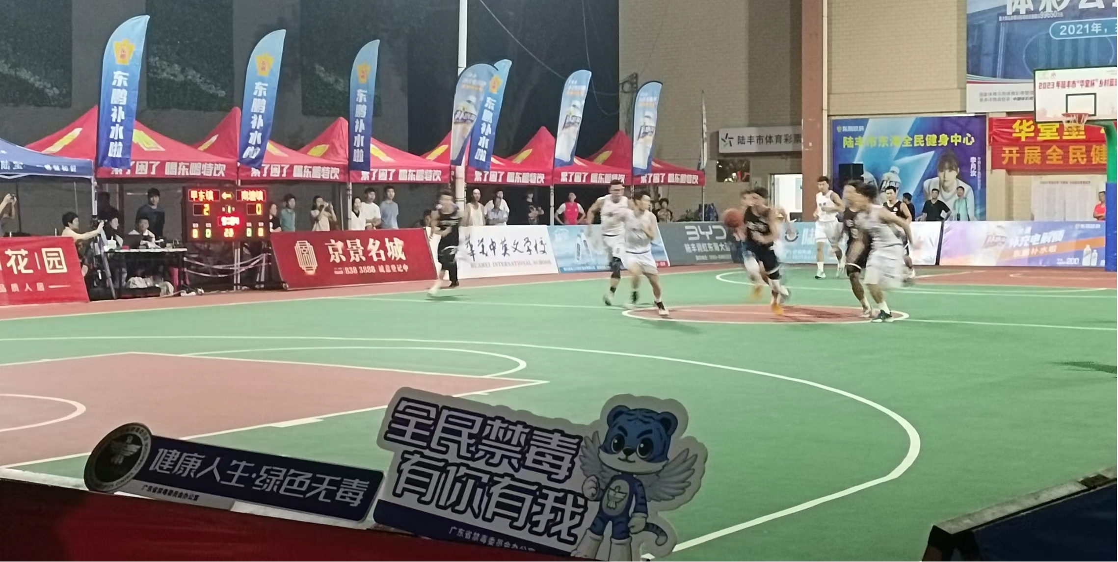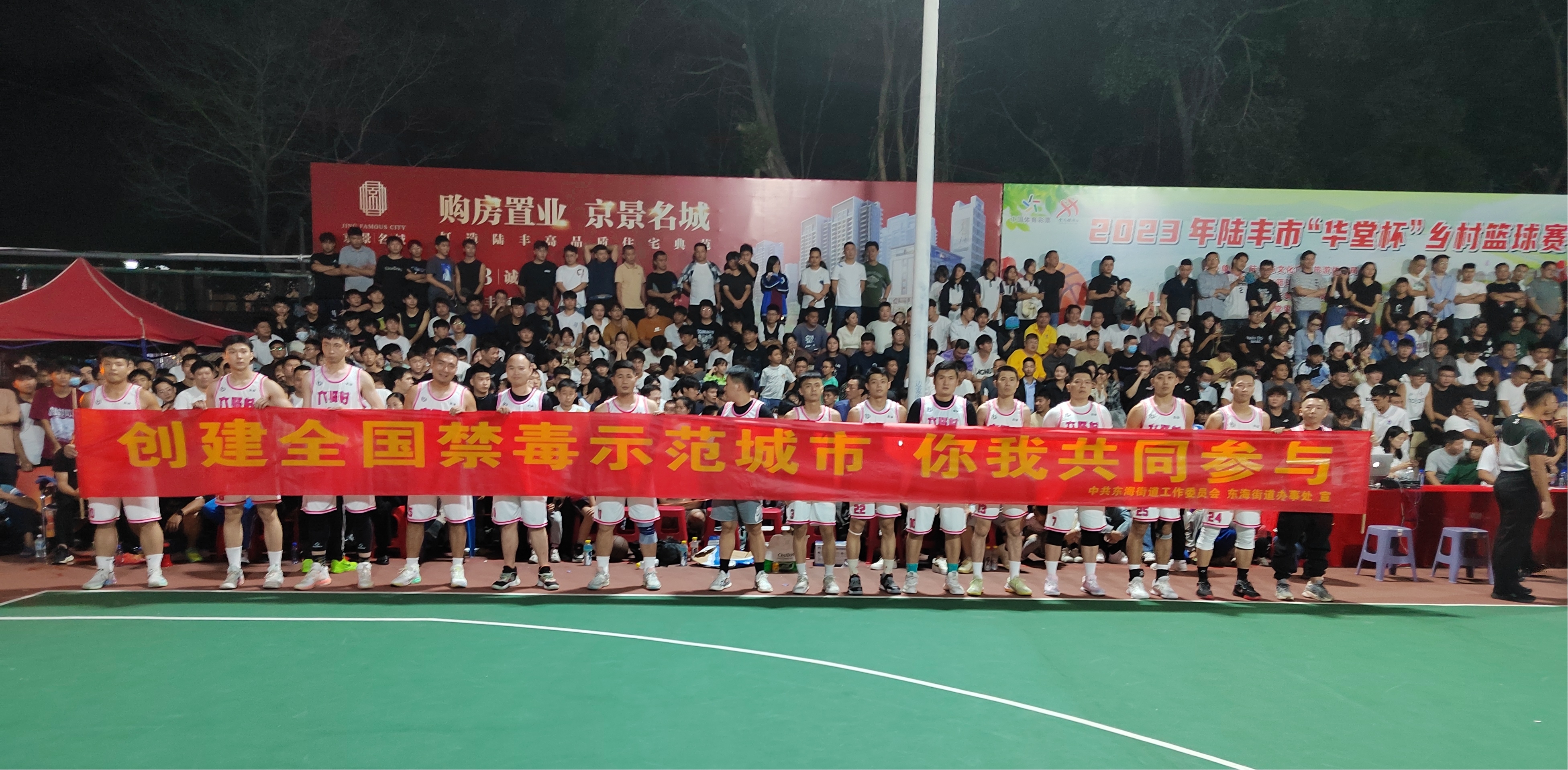 2023年10月19日,首届“华堂杯”乡村篮球决赛在陆丰市全民健身广场举行,近千名群众聚集于此观看决赛,现场气氛热烈,东海街道禁毒办精准把握契机,结合大赛开展以“创建全国禁毒示范城市 你我共同参与”为主题的“篮球+禁毒”宣传活动。