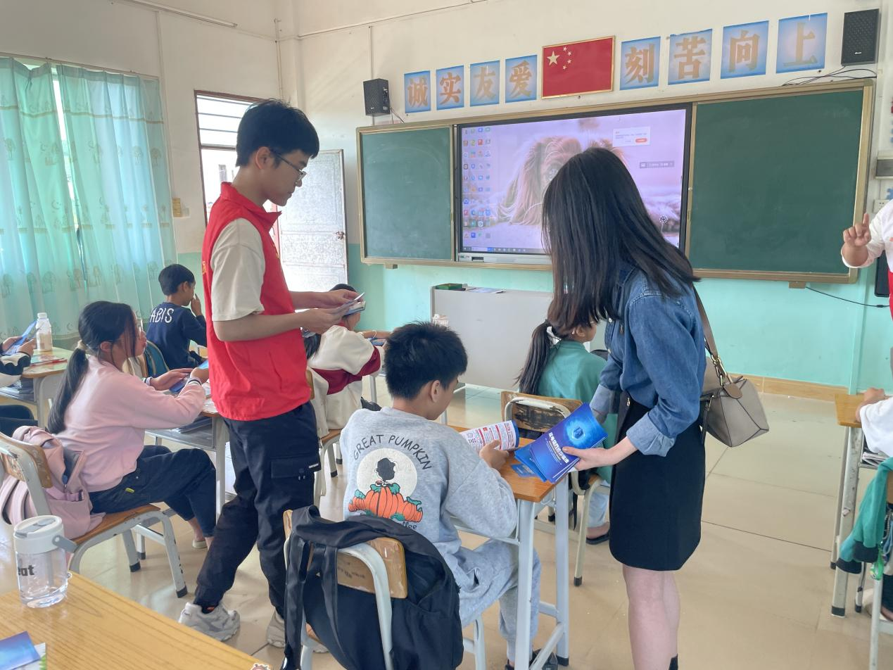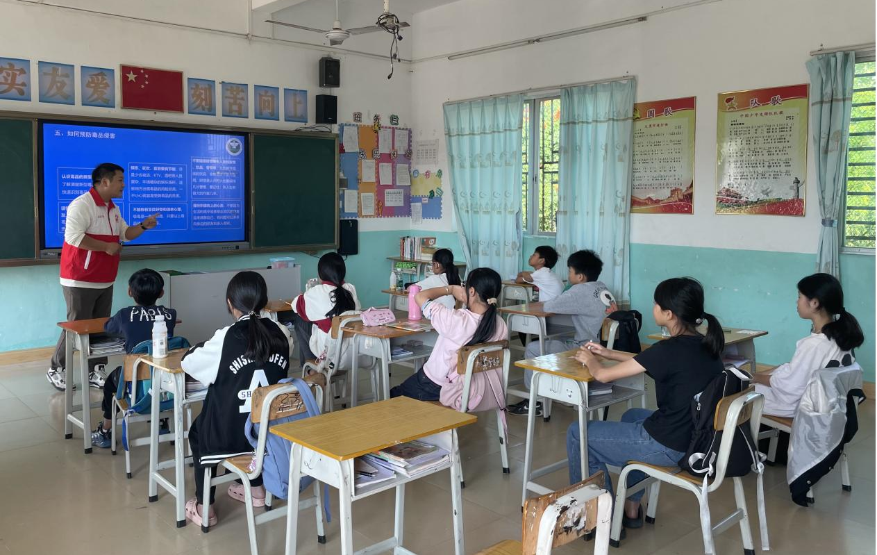 在禁毒课堂中,禁毒志愿者陈小龙利用禁毒PPT、禁毒案例向同学们科普“依托咪酯”的外观、滥用方式、吸食后的状态以及危害等知识,增强群众对此类麻醉药品的认识,教导他们如何识别毒品、抵制毒品危害、做好自我保护的方式方法。另外,志愿者还采用提问讲解,发放宣传资料等多种方式,用通俗易懂的语言,深入浅出地揭示毒品的本质,提醒同学们在日常生活中要提高自我保护意识,远离“依托咪酯”,积极检举滥用、销售“依托咪酯”等违法行为。