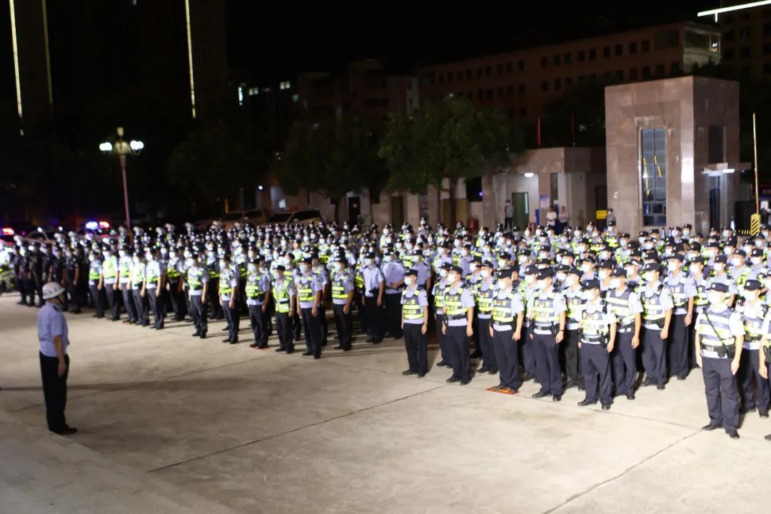“统一行动正式开始!”随着一声令下,伴随着闪烁的警灯,参战警力整齐的步伐,当晚的集中统一行动全面展开。各单位警力按计划分赴各点位开展行动。