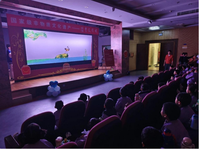 随后,皮影剧场成为欢乐与文化交融的舞台。经典皮影戏《龟与鹤》率先登场,影偶灵动的动作、细腻的神态搭配贴合剧情的配乐,生动演绎出龟与鹤的灵动互动之景,引得现场孩子们阵阵欢呼和掌声;《盛世藏行》中的杖头木偶选段紧随其后,演员凭借精湛的木偶操纵技艺和富有感染力的表演,将木偶艺术的精妙之处展现得淋漓尽致,独特的艺术魅力让孩子们看得目不转睛。