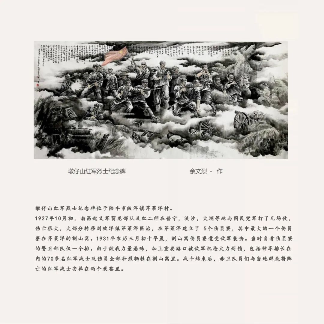 100年风雨兼程,100年峥嵘岁月。自党史学习教育开展以来,我市结合实际,不断整合宣传力量、创新宣传形式、拓宽宣传阵地、丰富宣传内容,多措并举营造党史学习教育浓厚氛围,让党史学习教育接地气、有声势、见实效,确保党史学习教育高标准、高质量扎实推进。陆丰市书画院组织40多位画家走进全市59个行政村82个革命遗址,历时4个多月创作出82幅历史性主题美术作品,作品以陆丰82处革命遗址为起点,以展现陆丰革命历史重大事件,革命烈士历史故事为核心,呈现出建党100年来陆丰革命的奋斗历程。