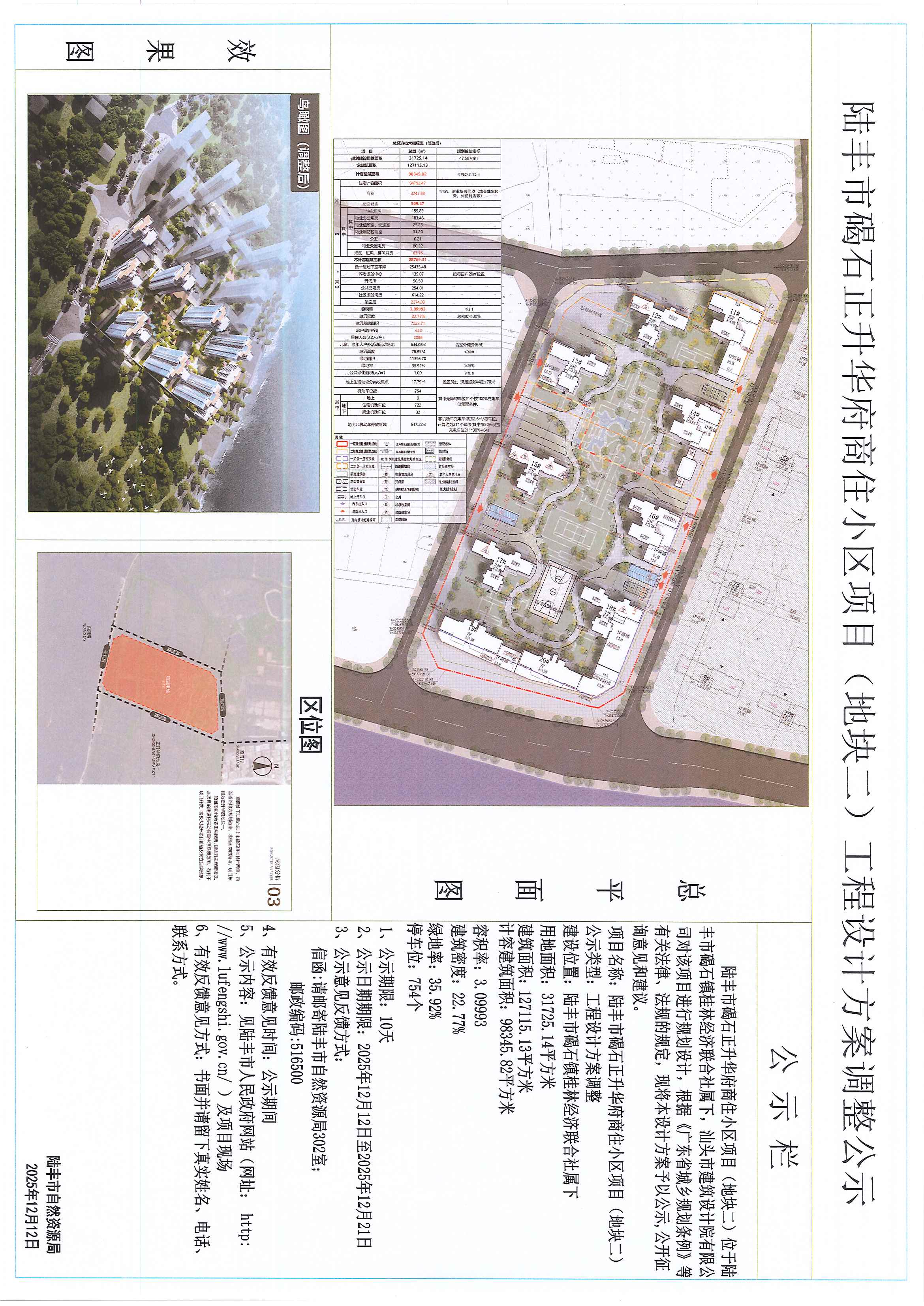 陆丰市碣石正升华府商住小区项目(地块二)工程设计方案调整公示
