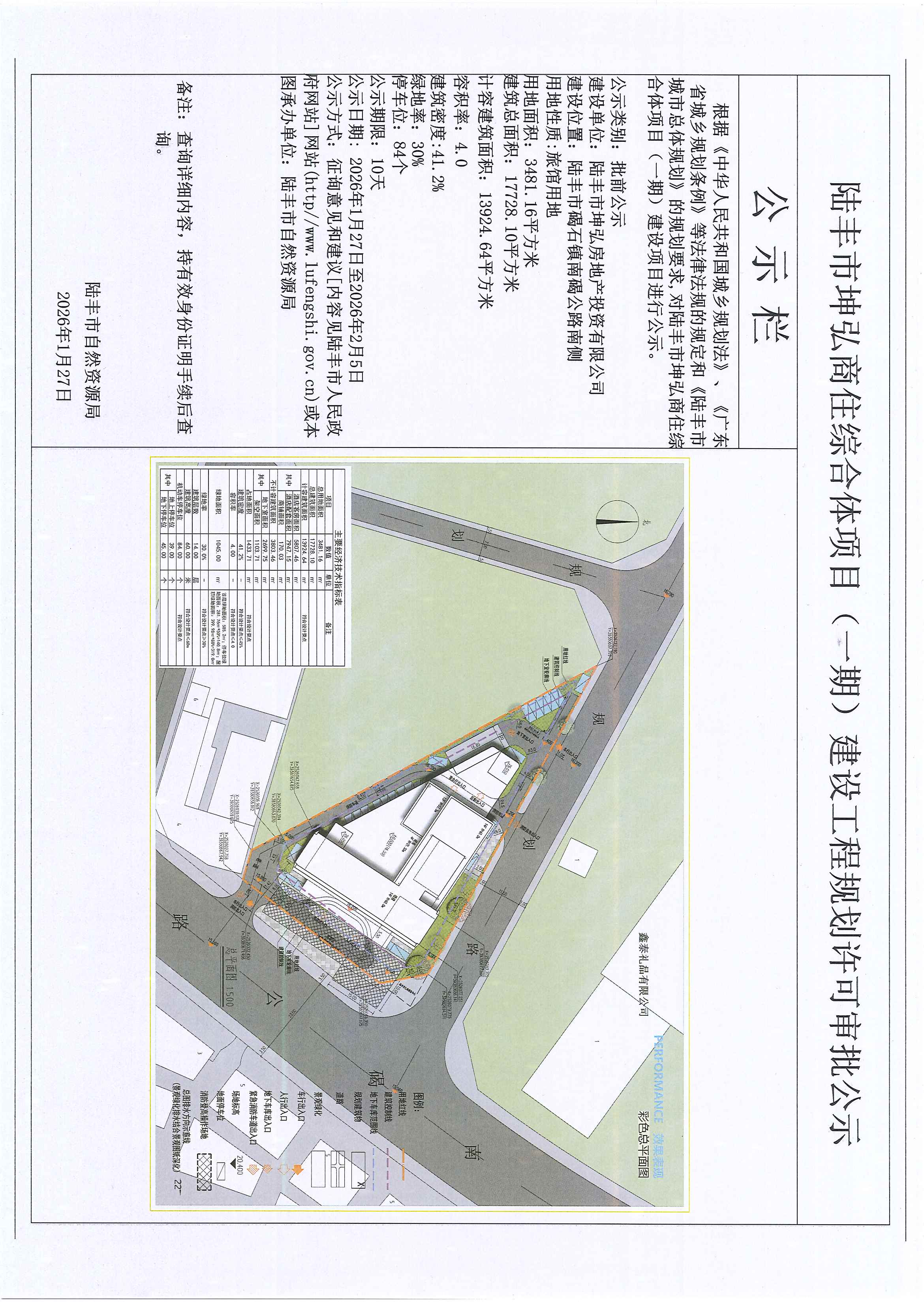 陆丰市坤弘商住综合体项目(一期)建设工程规划许可审批公示