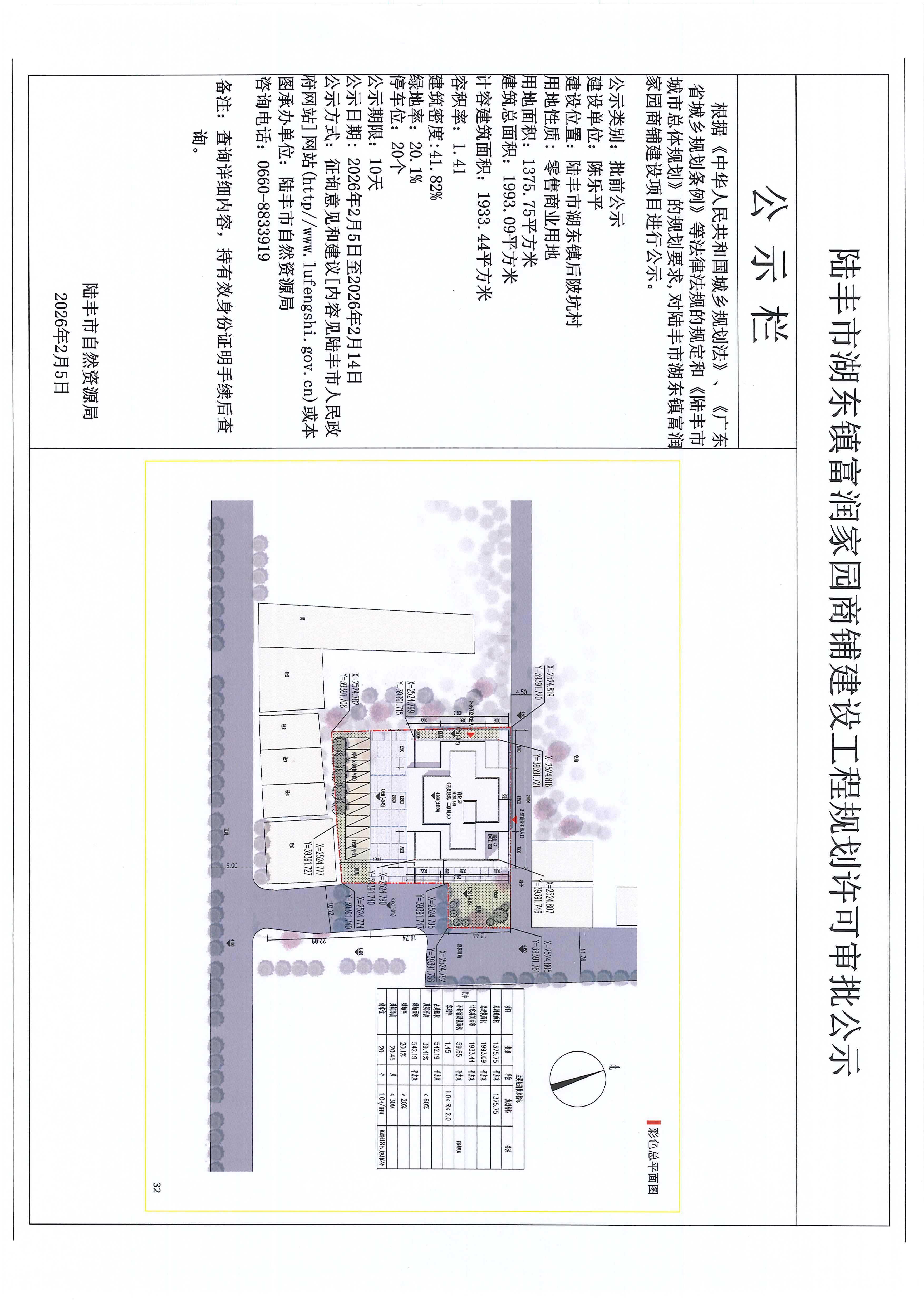 陆丰市湖东镇富润家园商铺建设工程规划许可审批公示