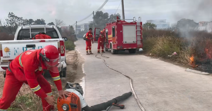 演练模拟因意外引发森林火灾,火势借着风势快速蔓延,情况危急。接警后,城东街道迅速响应,参演人员携带专业设备火速赶赴现场。到达火灾现场后,灭火行动随即展开。消防车作为主力,利用强大的水压,喷射出密集的水流,直击火点,压制火势。与此同时,操作风机的队员们也迅速就位,借助风机产生的强大风力,干扰火势蔓延方向,削弱火焰强度,为灭火工作创造有利条件。各小组之间配合默契,依据预定方案有条不紊地推进灭火进程。