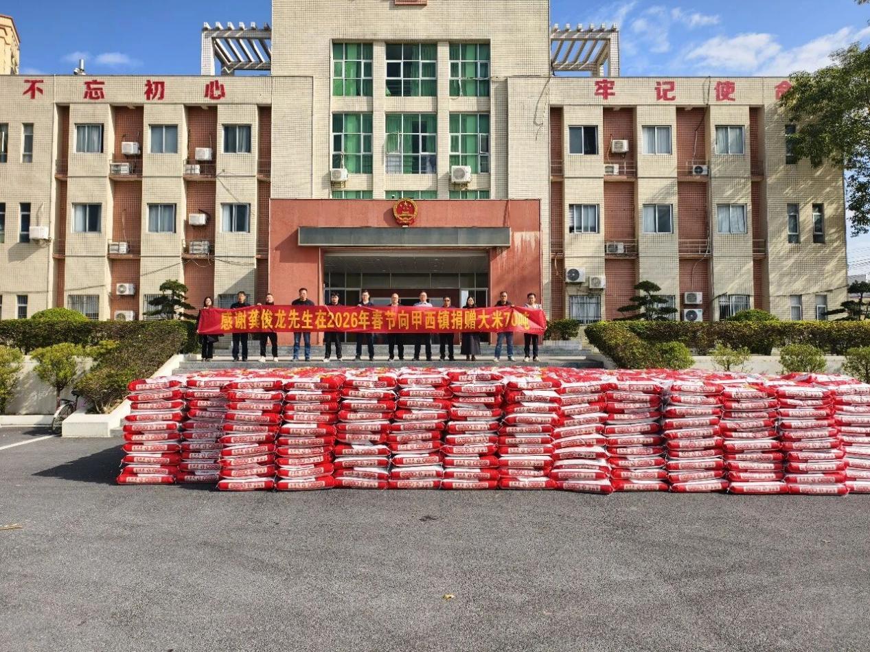 龚俊龙先生在2026年春节前向甲西镇捐赠大米70吨