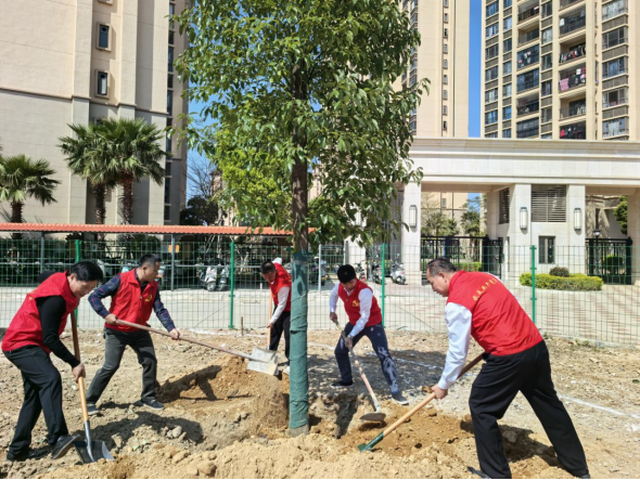 在香校村滨江花城东侧植树点,街道党工委书记蔡景章与班子成员、各村(社区)党组织书记等一同参加劳动。大家干劲十足,配合默契,扶苗、培土、踩实、浇水,每道工序都认真细致、有条不紊。经过辛勤劳作,一株株新栽的树苗迎风而立,焕发出勃勃生机,这不仅是为乡村增添的一片新绿,更是为高质量发展播下了一颗颗绿色的种子。