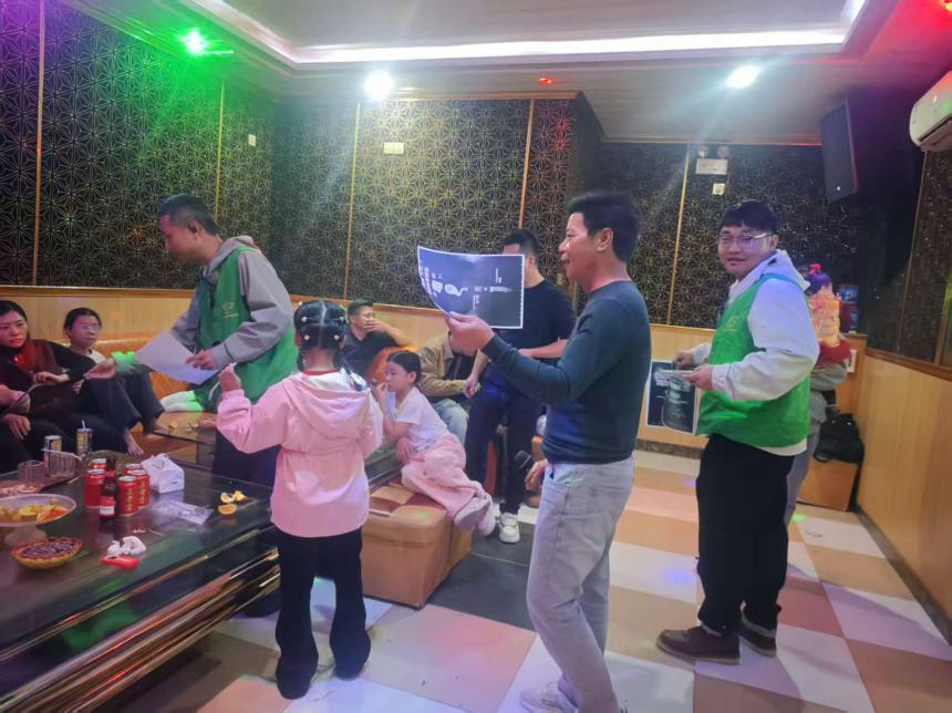 为进一步加强娱乐场所的禁毒宣传力度,切实提高娱乐场所从业人员对毒品的认知及防范能力。春节初五晚上,金厢镇平安法治办工作人员在下埔村ktv、台球室、民宿等场所开展了一场毒品预防教育宣传活动。