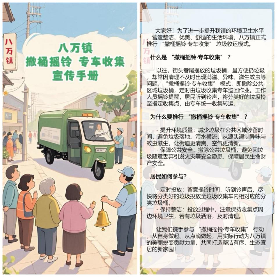 制作八万镇“撤桶摇铃·专车收集”宣传手册