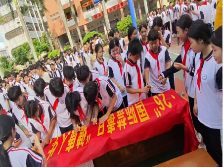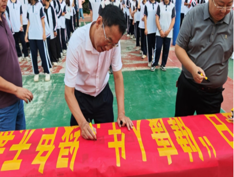 随后,城东中学分会场活动也顺利进行。街道办党工委副书记文志慧出席分会场活动,文志慧副书记发表了动员讲话。随后带领全体师生进行禁毒宣誓,并开展全体师生“健康人生,绿色无毒”签字及参观禁毒教育基地活动。