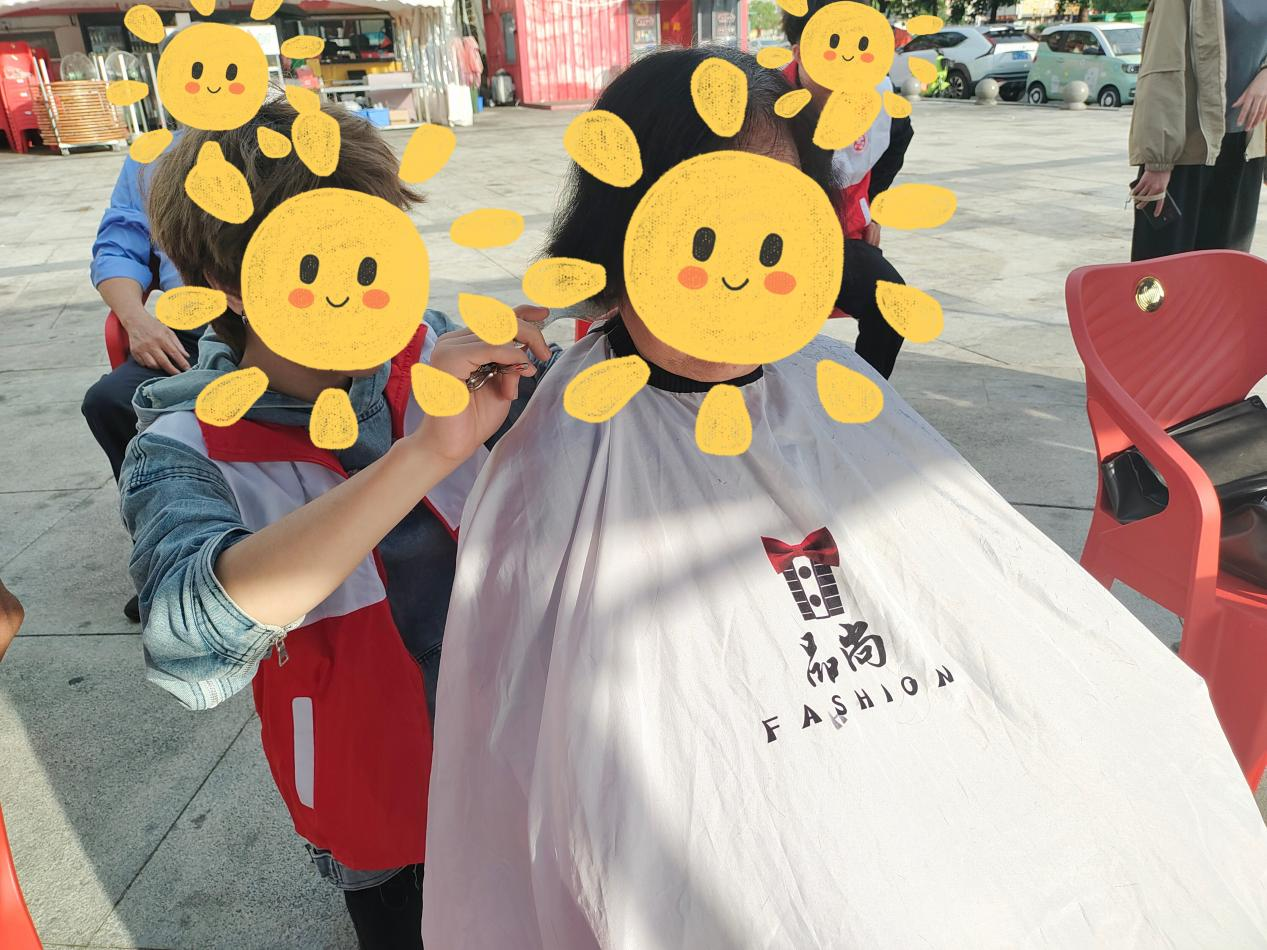 在活动现场,志愿者们精心准备了理发椅、剪刀、推子、围布等全套工具,全力为老人家营造舒适、安全的理发环境。理发过程中,志愿者理发师们展现出专业的技艺和十足的耐心,他们一边仔细地为群众修剪头发,一边陪群众拉家常,细节之处尽显温情。