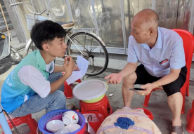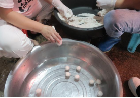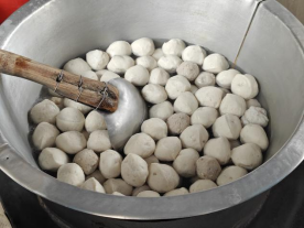 在鱼丸新鲜出锅后,马师傅热情邀请青年志愿者们品尝,通过亲口品鉴,我们直观感受了甲子鱼丸的鲜美风味,加深了对这一地方特色饮食类非遗项目的认识;访谈与体验结束后,双方合影留念,标志着本次甲子镇非遗调研活动圆满收官。