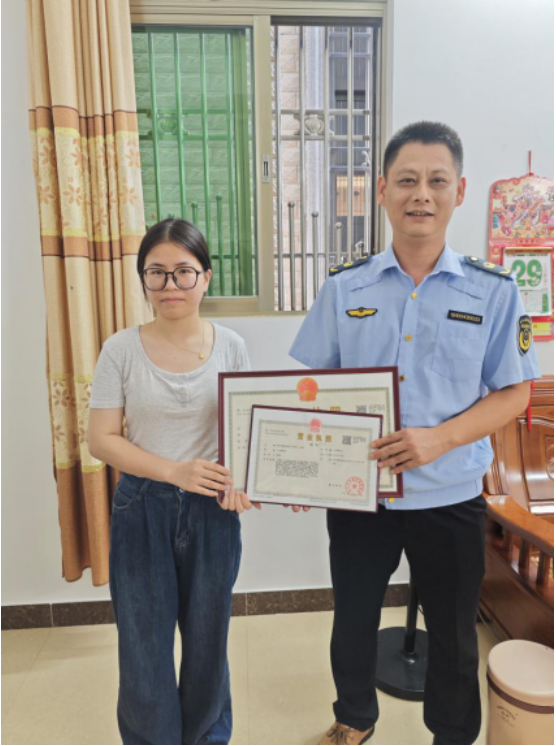 9月29日,陆丰市市场监督管理局行政许可和登记注册股的工作人员将崭新的营业执照送到杨女士手中。“营业执照变更太方便了,不用注销个体直接转型,为我们解决了大难题!”杨女士高兴地对工作人员说。