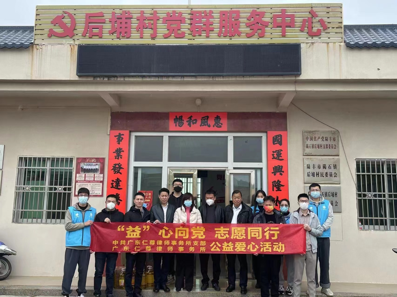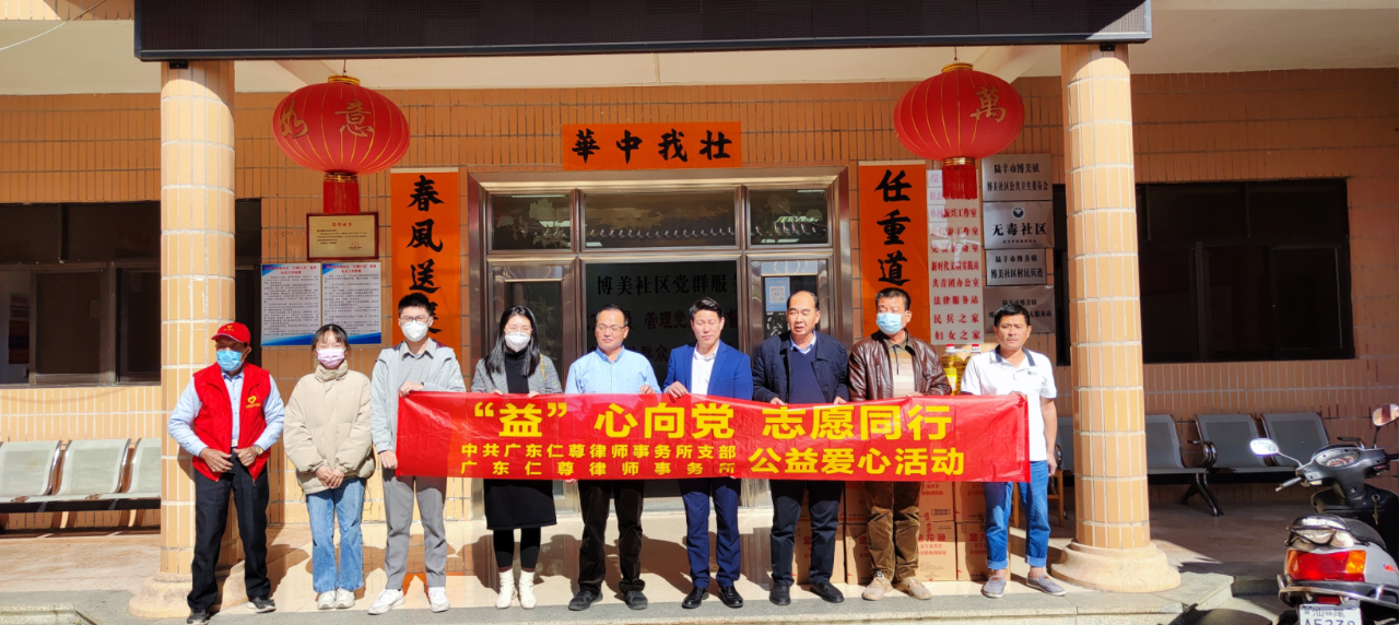 为提高群众法律素质和法治意识,弘扬法治精神,牢固树立并自觉践行社会主义法治理念,引导村民自觉学法守法用法,助力一村一法律顾问常态长效落实,合力巩固脱贫成果,共同助推乡村振兴。2022年12月13日、14日、19日,广东仁尊律师事务所分别在陆丰市碣石镇、南塘镇、博美镇和华侨管理区开展“‘益’心向党,志愿同行”公益爱心活动。为提高群众法律素质和法治意识,弘扬法治精神,牢固树立并自觉践行社会主义法治理念,引导村民自觉学法守法用法,助力一村一法律顾问常态长效落实,合力巩固脱贫成果,共同助推乡村振兴。2022年12月13日、14日、19日,广东仁尊律师事务所分别在陆丰市碣石镇、南塘镇、博美镇和华侨管理区开展“‘益’心向党,志愿同行”公益爱心活动。