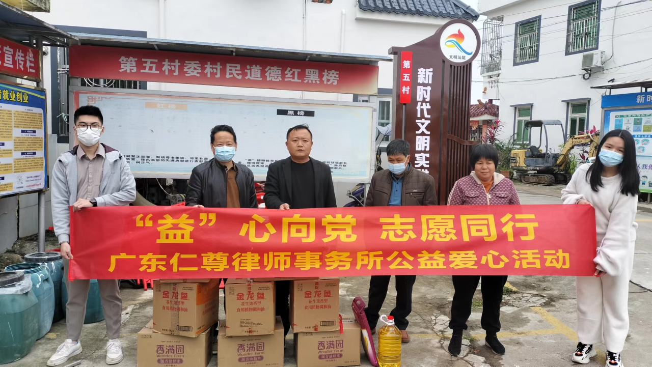 此次爱心志愿活动由广东仁尊律师事务所全所律师、工作人员积极捐款,所募集捐款为本所律师担任村居法律顾问的“低保”村民共159户捐赠了大米、食用油和慰问金等,同时向部分村民发放宪法、“送法下乡”等学习资料,用于帮助提升村民法律意识和生活质量。