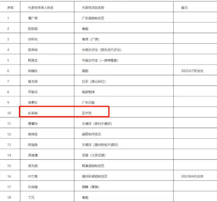 附件:广东省2021年度国家级非物质文化遗产代表性传承人传承活动评估等次为优秀的传承人名单
