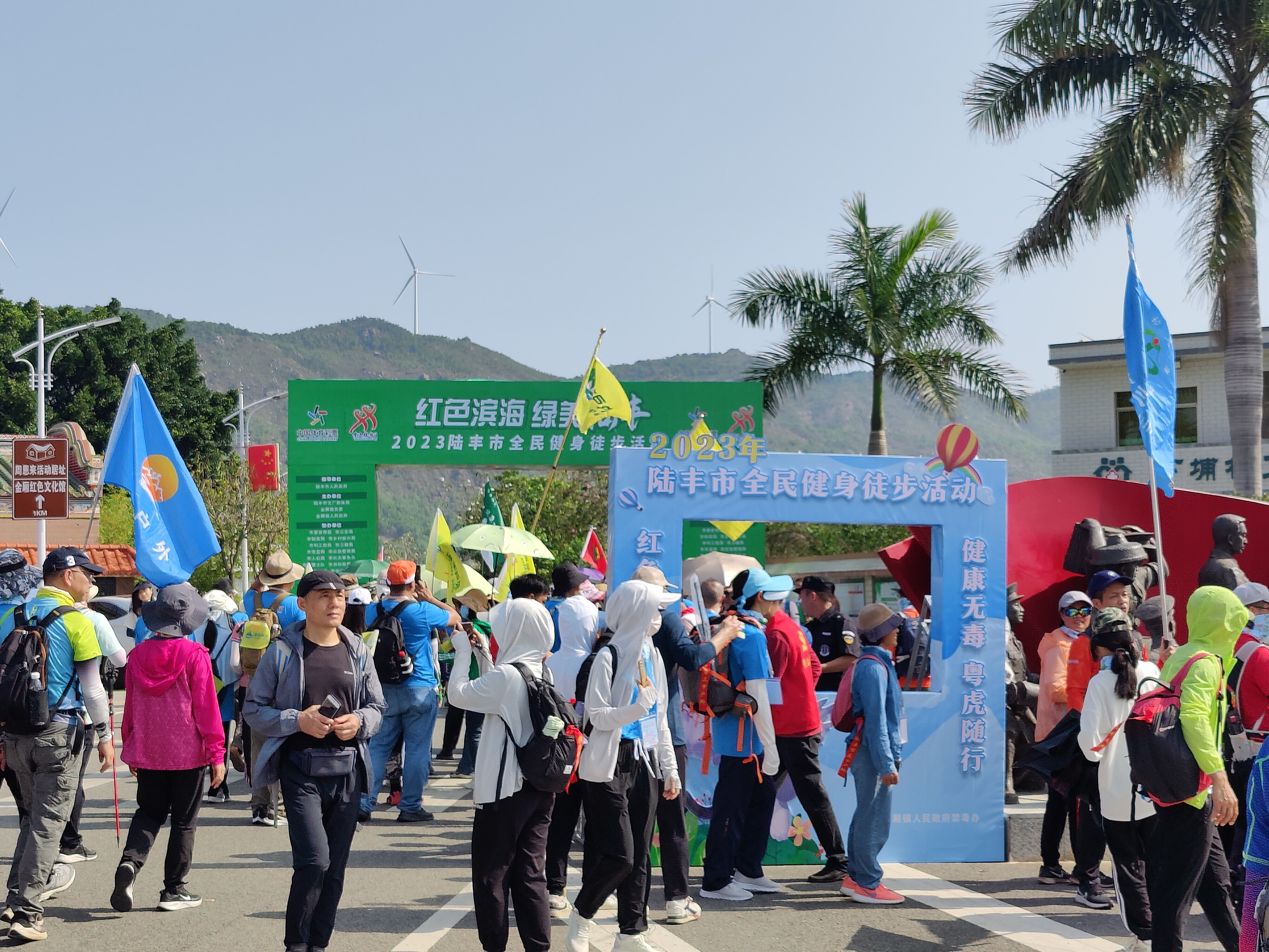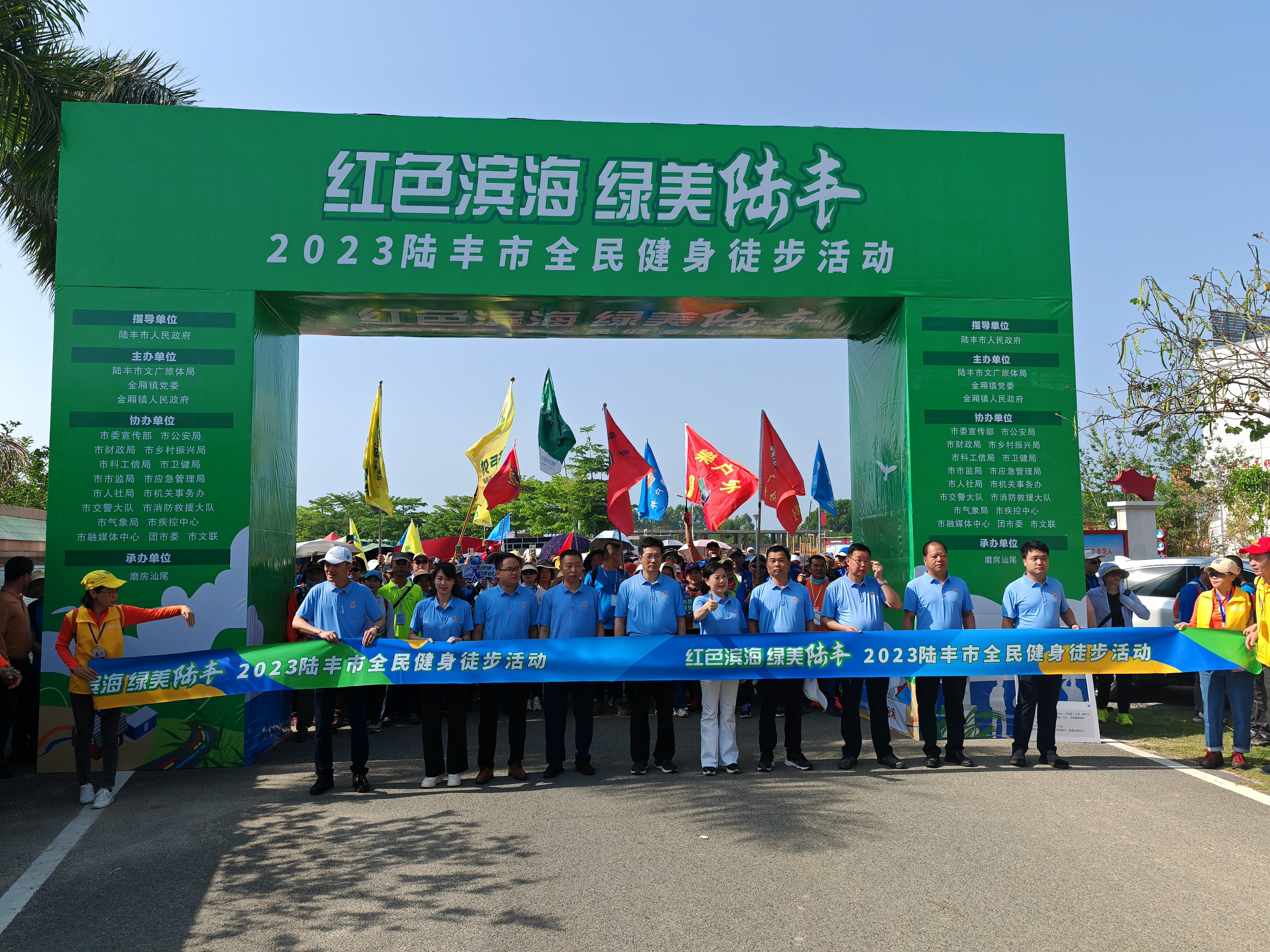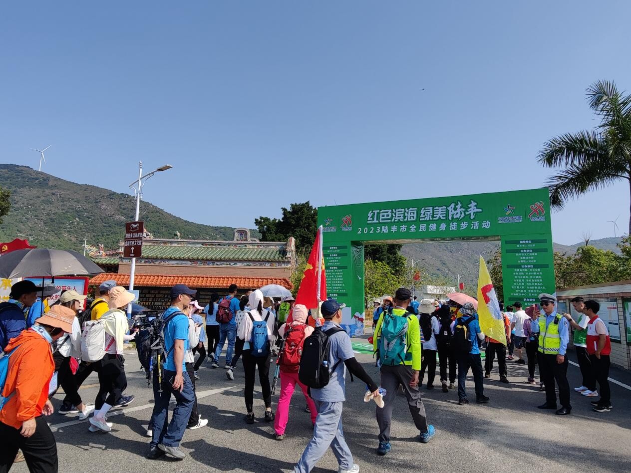绿美陆丰”2023年陆丰市全民健身徒步活动在金厢镇下埔村正式启动,共召集徒步爱好者800余名,途经周恩来活动居址、周恩来渡海处纪念碑等景点,在18公里海光山色中共享陆丰独有的红色资源与滨海旅游休闲风光。