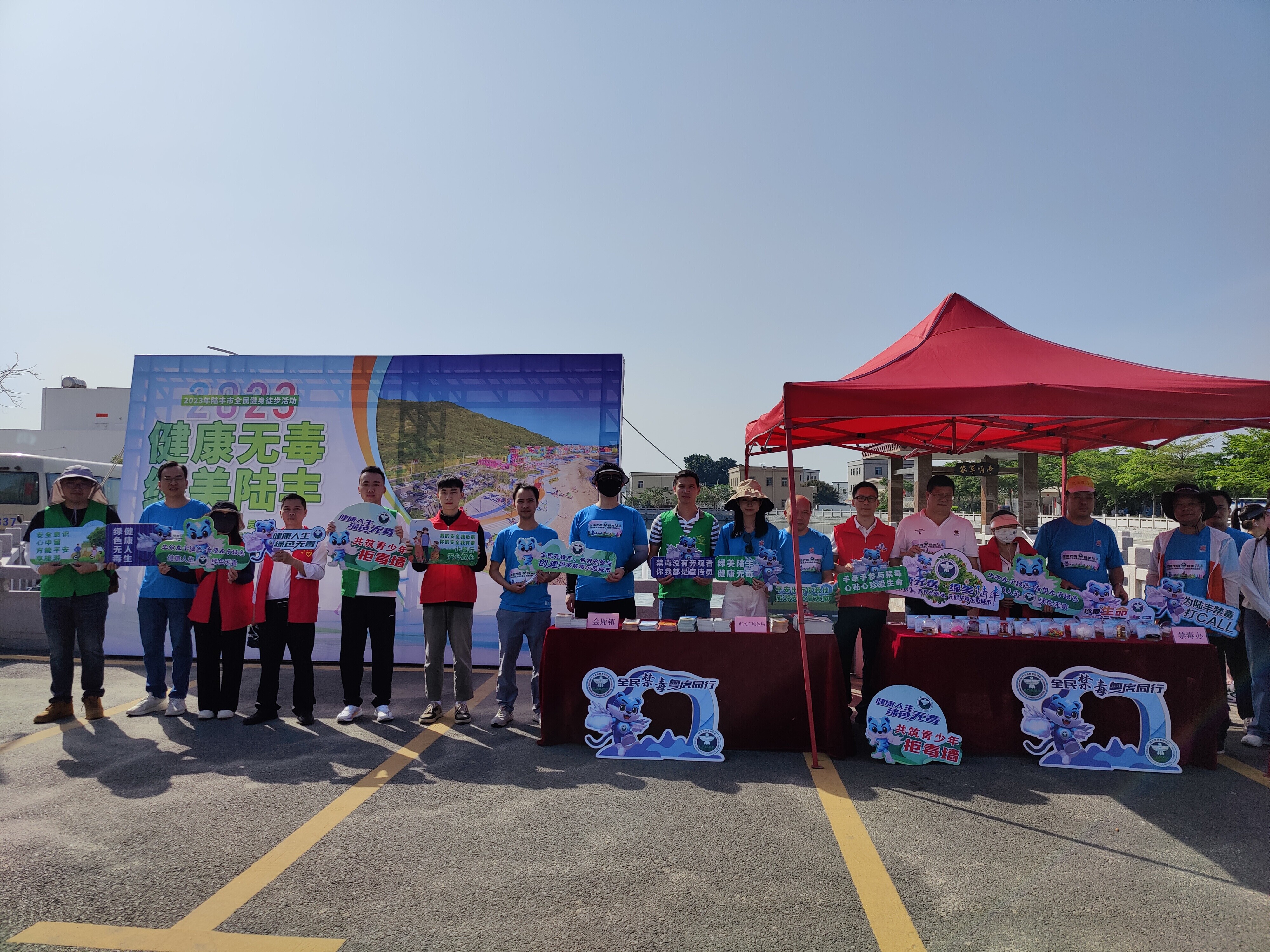 市文广旅体局联合市禁毒办、金厢镇政府在徒步活动中融入禁毒元素,开展以“健康无毒 绿美陆丰”为主题的禁毒宣传活动,倡导市民参加健身运动、增强体质,传递禁毒正能量。