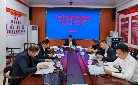 4月2日,陆丰市市场监督管理局召开党组扩大会,听取第一季度集中整治工作成效汇报,分析当前存在的问题,部署下一阶段重点任务。局主要领导主持会议并讲话,局党组成员,各所、股室及直属单位负责人参加会议。