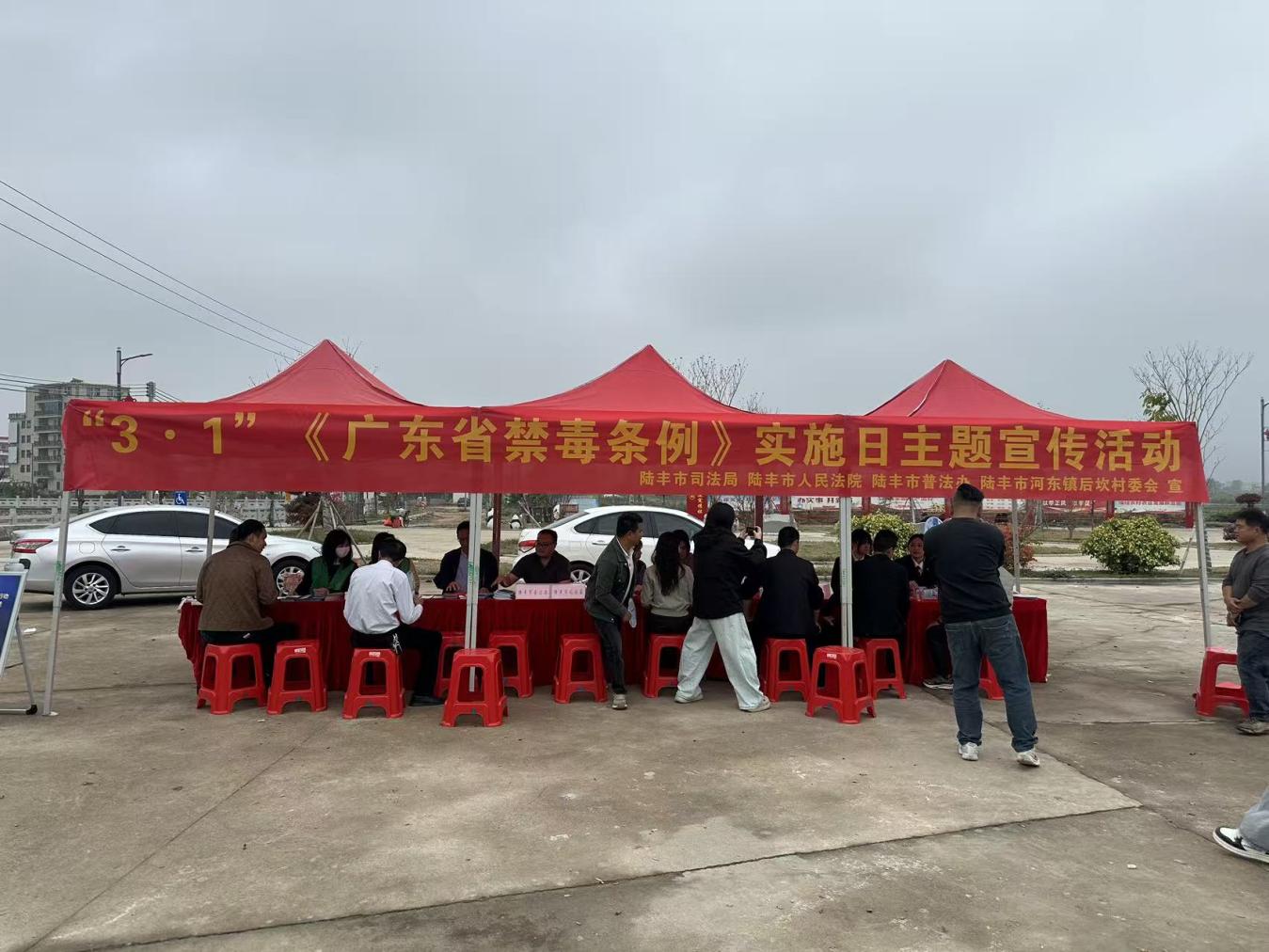 为全面贯彻落实《广东省禁毒条例》,推动禁毒工作高质量发展,由市司法局牵头,联合市法院、河东镇禁毒办、后坎村委会等30余人,组成禁毒宣传队。3月2日上午,以《广东省禁毒条例》实施日为契机,在河东镇后坎村开展“3·1”主题宣传活动。