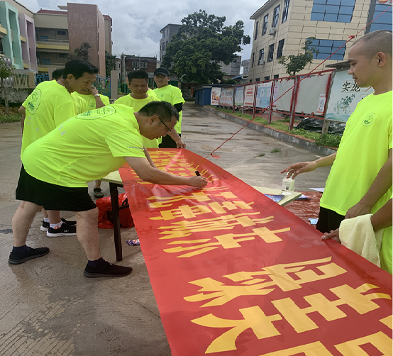 活动中期,于南坑水库和南桂山紫林禅寺设置中点补给站,引导参与人员期间手持禁毒宣传牌打卡拍照留念,志愿者们更是贴心地泡好一壶壶香气四溢的潮汕工夫茶品茶小憩,并借着这个时机介绍禁毒知识,以提高大家识毒拒毒意识。