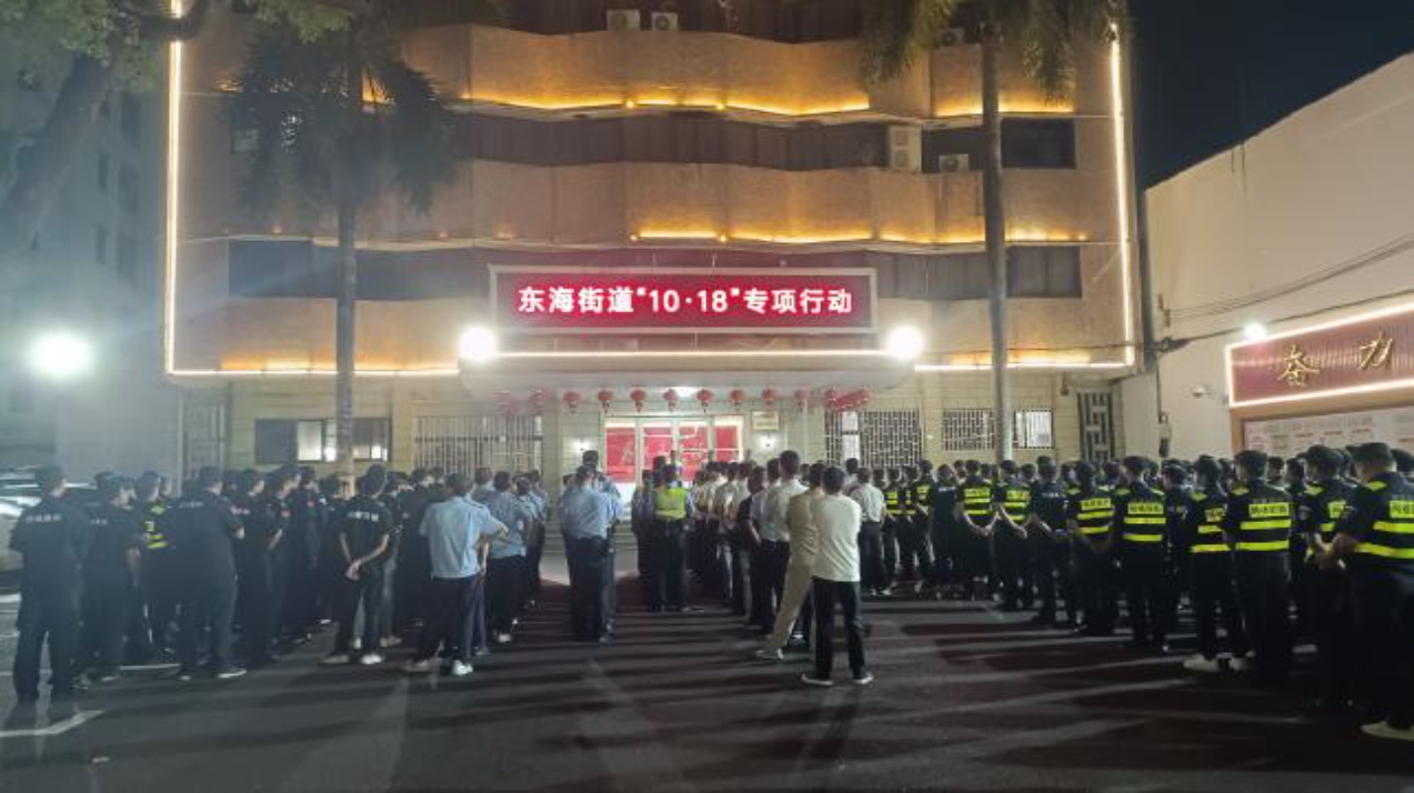 为深入贯彻落实市委、市政府关于“10·18”专项行动工作部署,统筹开展禁毒示范创建、反偷渡反走私、交通整治攻坚、压警情控发案等各项工作,10月31日晚,东海街道组织全体领导干部、派出所民警、村(社区)“两委”干部及全体网格联防队员共600余人,在辖区内开展“10.18”专项行动,为东海高质量发展营造一个平安稳定的社会环境。