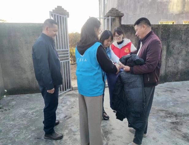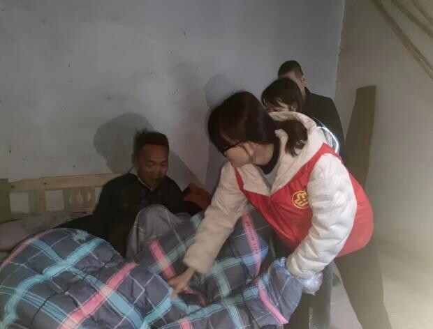 志愿者们通过走访入户的方式将御寒棉被和防寒衣送到困难群众手中,并仔细了解他们的身体和生活情况,询问是否存在困难和难题,叮嘱他们在寒冷天气注意保暖和安全出行。