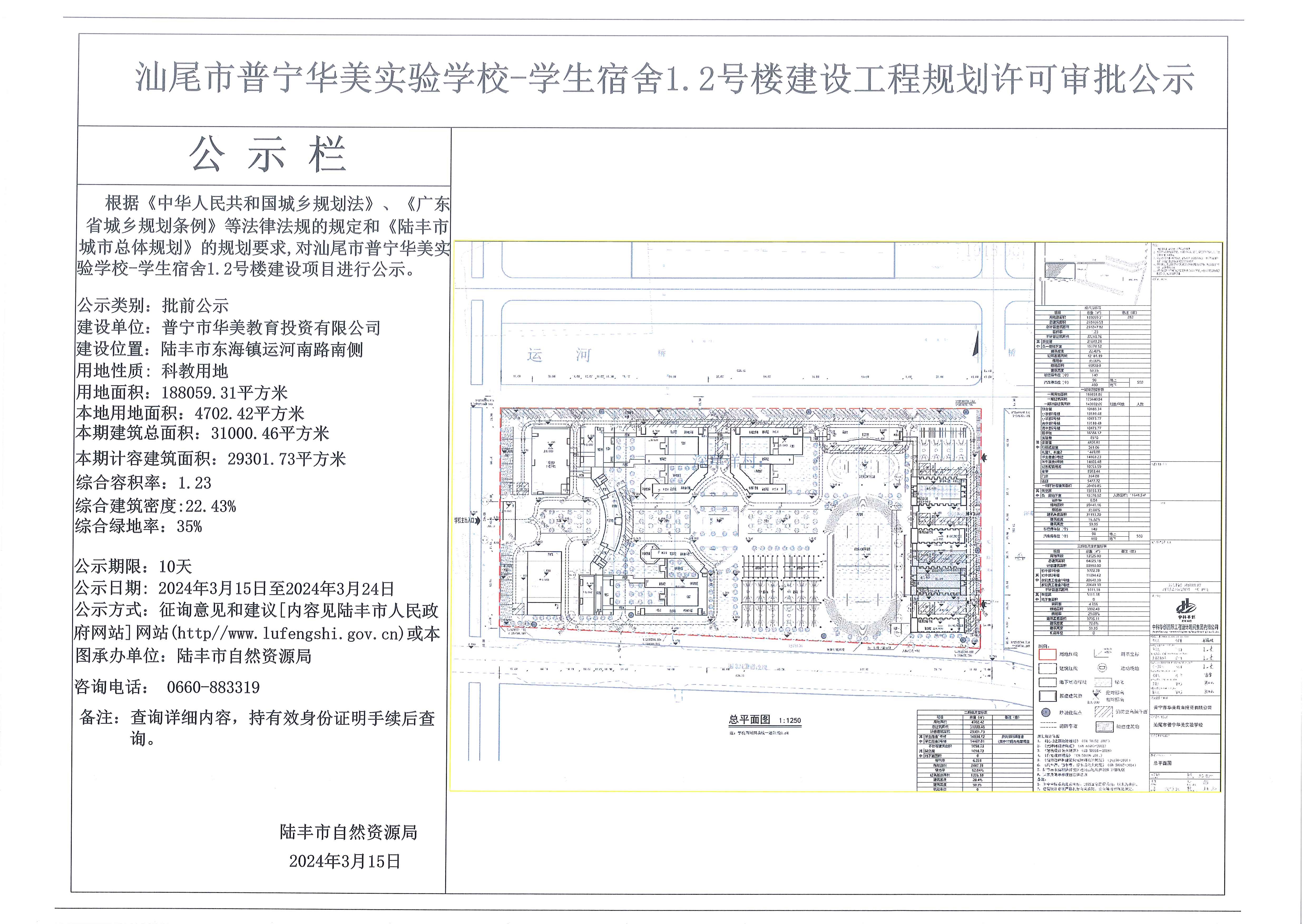 汕尾市普宁华美实验学校-学生宿舍1.2号楼建设工程规划许可审批公示