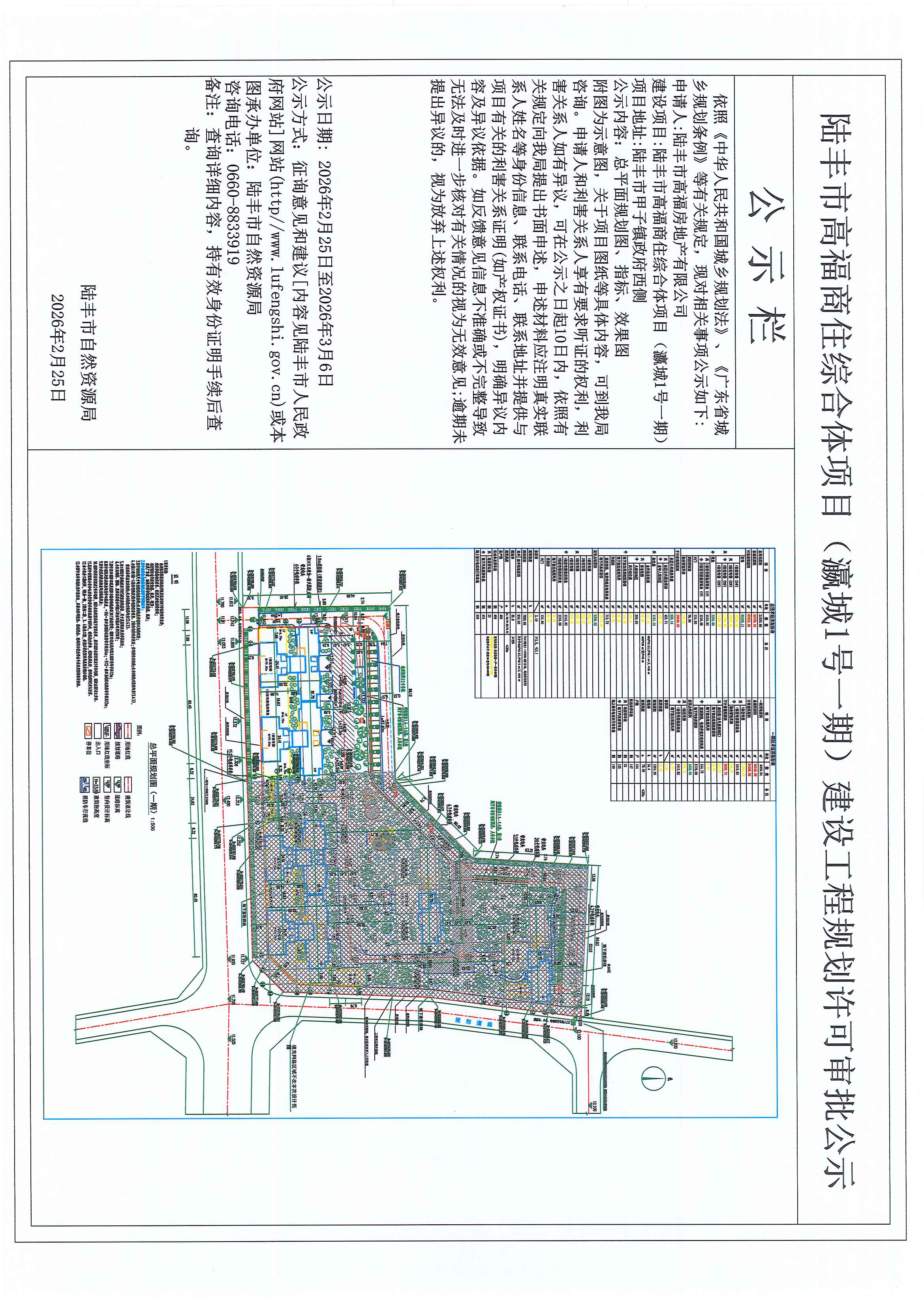 陆丰市高福商住综合体项目(瀛城1号一期)建设工程规划许可审批公示