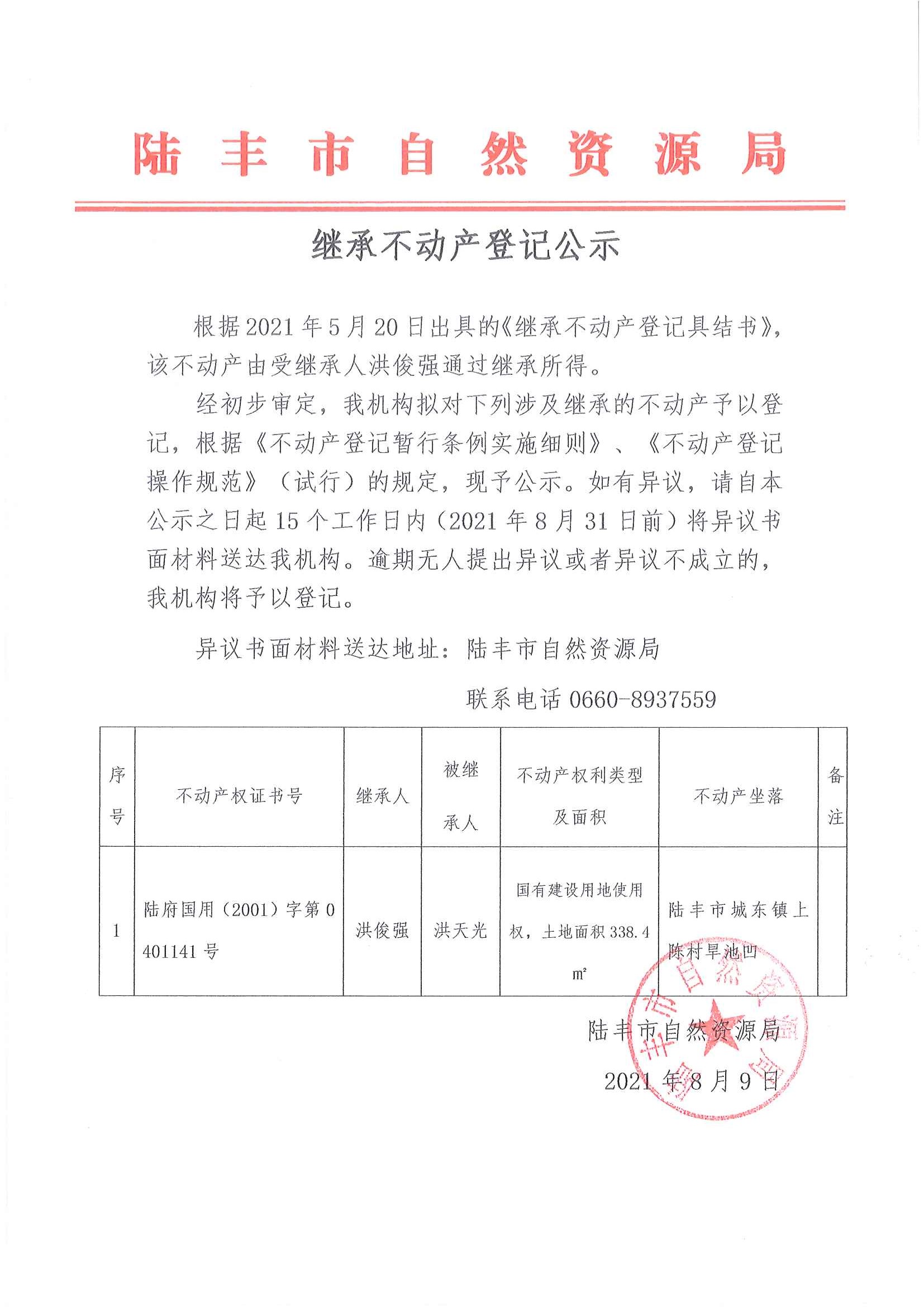继承不动产登记公示(洪俊强)