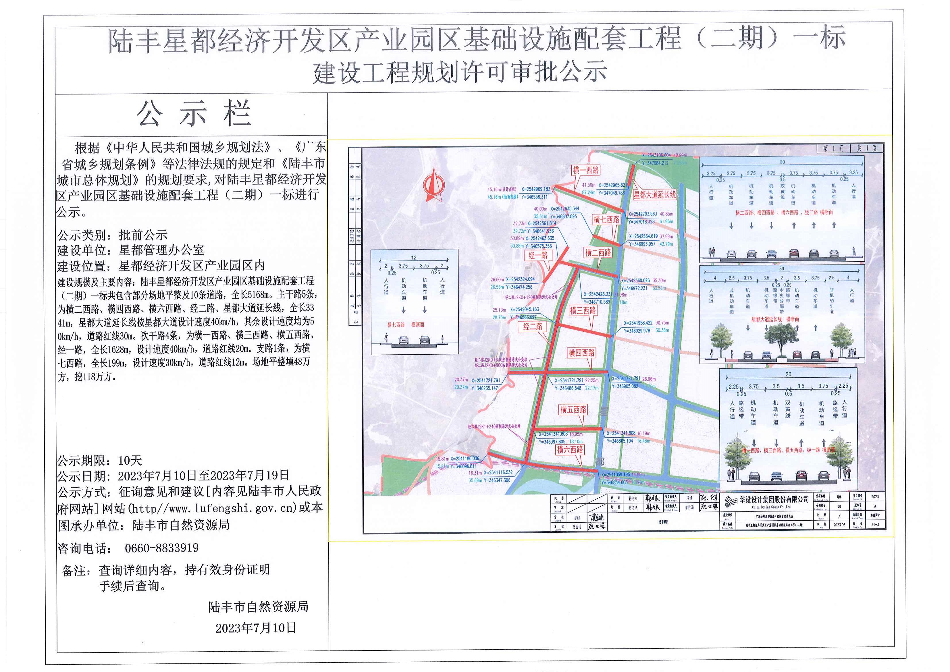 陆丰星都经济开发区产业园区基础设施配套工程(二期)一标建设工程规划许可审批公示